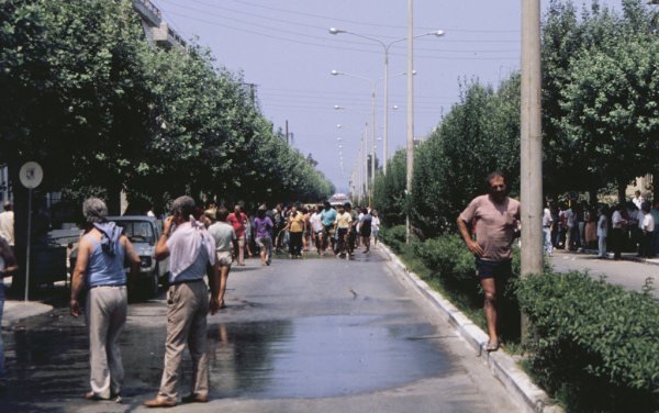 Ναι, η διαδήλωση ξεκίνησε από την Νομαρχία – ήταν μία λαοθάλασσα, δε βλέπαμε αρχή ή τέλος – και στεκόμουνα – θυμάμαι αξέχαστα ακόμα και σήμερα – και έβλεπα: πέρασε από την Ηρώων Πολυτεχνείου και έστριψε από Βίλα Κούνδουρου προς το γήπεδο έως τα Χανιά, Πλατεία Αγοράς. Όταν στρίβαμε στη Βίλα Κούνδουρου, σηκώνομαι όρθιος και κοιτάζω τον κόσμο. Και ήταν και στους δύο δρόμους της Ηρώων Πολυτεχνείου! Και η ουρά του κόσμου ήταν ακόμα στη νομαρχία. Μπορείς να το αντιληφθείς αυτό; Ήταν μία απέραντη λαοθάλασσα! Σίγουρα ήταν παραπάνω από 15.000 κόσμος. Ίσως και 20.000!
