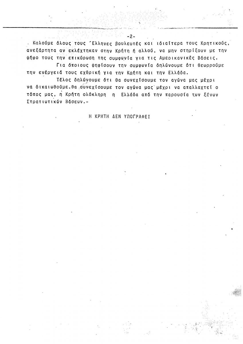 Ο δεύτερος λόγος ήταν ότι θα ερχόταν σε σύντομο χρονικό διάστημα για ψήφιση μια νέα Συμφωνία που όλα έδειχναν ότι θα ήταν διαιώνισης του καθεστώτος των Βάσεων και όχι κλεισίματος.