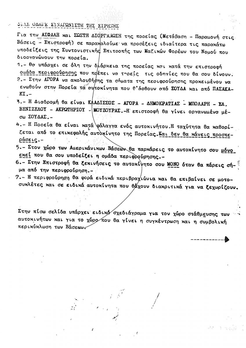 Θυμάμαι εκατοντάδες, ίσως και πάνω από 1.000 αυτοκίνητα τα οποία είχαν όλα αφίσες της Επιτροπής. Σημαίες για τον αντιβασικό αγώνα. Με ελληνικές σημαίες, με σημαίες της ειρήνης, με συνθήματα. Ήταν κάτι το ωραίο που μας έδωσε μεγάλο κουράγιο να συνεχίσουμε τον αγώνα. Ο παλμός ήταν αγωνιστικός. Μύριζε νίκη.