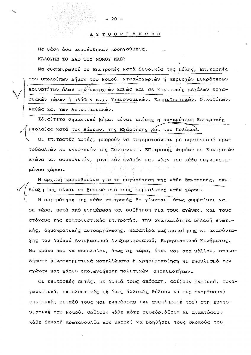 Φυλλάδιο που ενημέρωνε για τη δράση περικύκλωσης της νομαρχίας στις 23 Ιούλη 1990