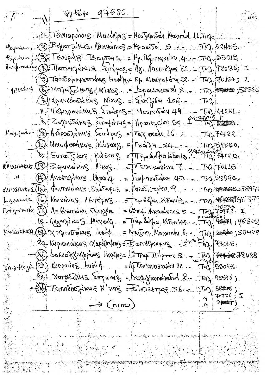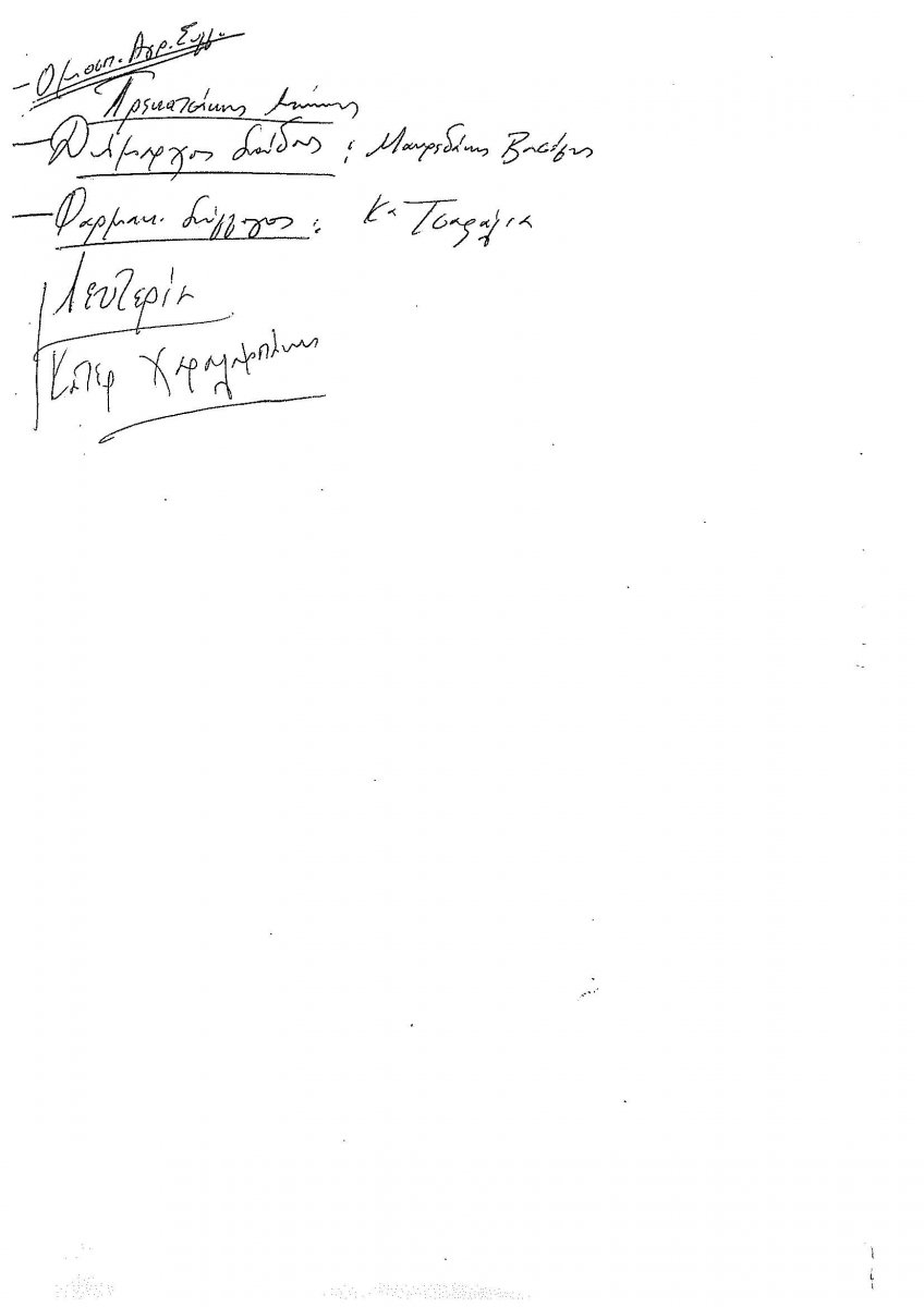 Το κοίταξα καλά. Από πάνω, κάποιος είχε γράψει με στυλό: «Συντονιστική Επιτροπή Φορέων Νομού Χανίων». Και μετά ακολουθούσανε φορείς, ονόματα ατόμων που συμμετέχουν στους φορείς και σε κάποιες περιπτώσεις τηλέφωνα. Έμοιαζε πρόχειρο. Όμως το έγγραφο, το αναγνώρισα, είχε μια βαρύτητα. Μια σχεδόν αναγκαία συνομωτική ουσία. Σα σ’ εκείνο το χρονικό σημείο να μη χρειαζόταν κάποια επισημότητα και η τήρηση των τύπων να μην είχε ουσία. Σα αυτό που είχε σημασία, να ήταν απλά η διατύπωση της διαθεσιμότητας. «Αυτά που βλέπεις», μου είπε, «είναι οι πρώτες υπογραφές των φορέων για την ίδρυση της Επιτροπής».