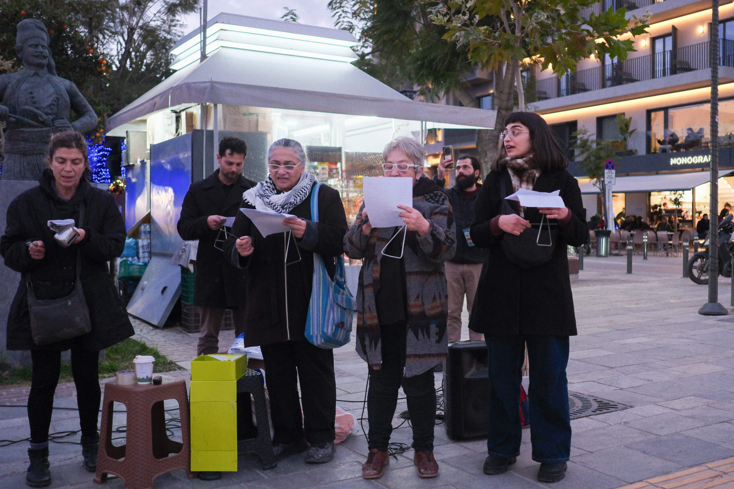 Στη συνέχεια, η διαμαρτυρία μεταφέρθηκε στην καρδιά της πόλης των Χανίων, στην Πλατεία 1866. Αναγνώσθηκε κείμενο προβληματισμού, το οποίο αποτύπωνε την αγωνία των νοικοκυριών που ζουν υπό το φάσμα των πλειστηριασμών και της οικονομικής δυσπραγίας.