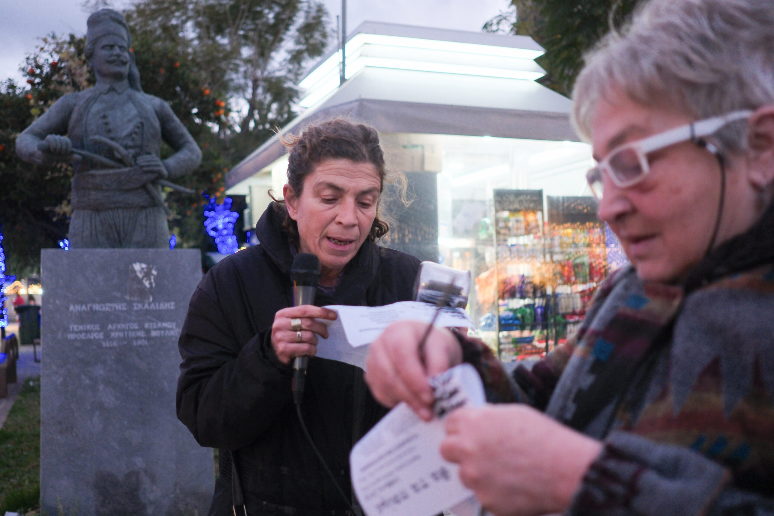 Με έναν διαφορετικό και έντονα συμβολικό τρόπο επέλεξαν να στείλουν το δικό τους μήνυμα τις ημέρες των εορτών τα μέλη της «Αγωνιστικής Κίνησης κατά των Πλειστηριασμών Χανίων». Συνδέοντας τον αγώνα για την προστασία της πρώτης κατοικίας με τις κινητοποιήσεις του αγροτικού κόσμου, η συλλογικότητα πραγματοποίησε σειρά παρεμβάσεων, ψάλλοντας τα «κάλαντα των πλειστηριασμών» και αναδεικνύοντας την αθέατη πλευρά της κοινωνικής πραγματικότητας πίσω από τη γιορτινή βιτρίνα.