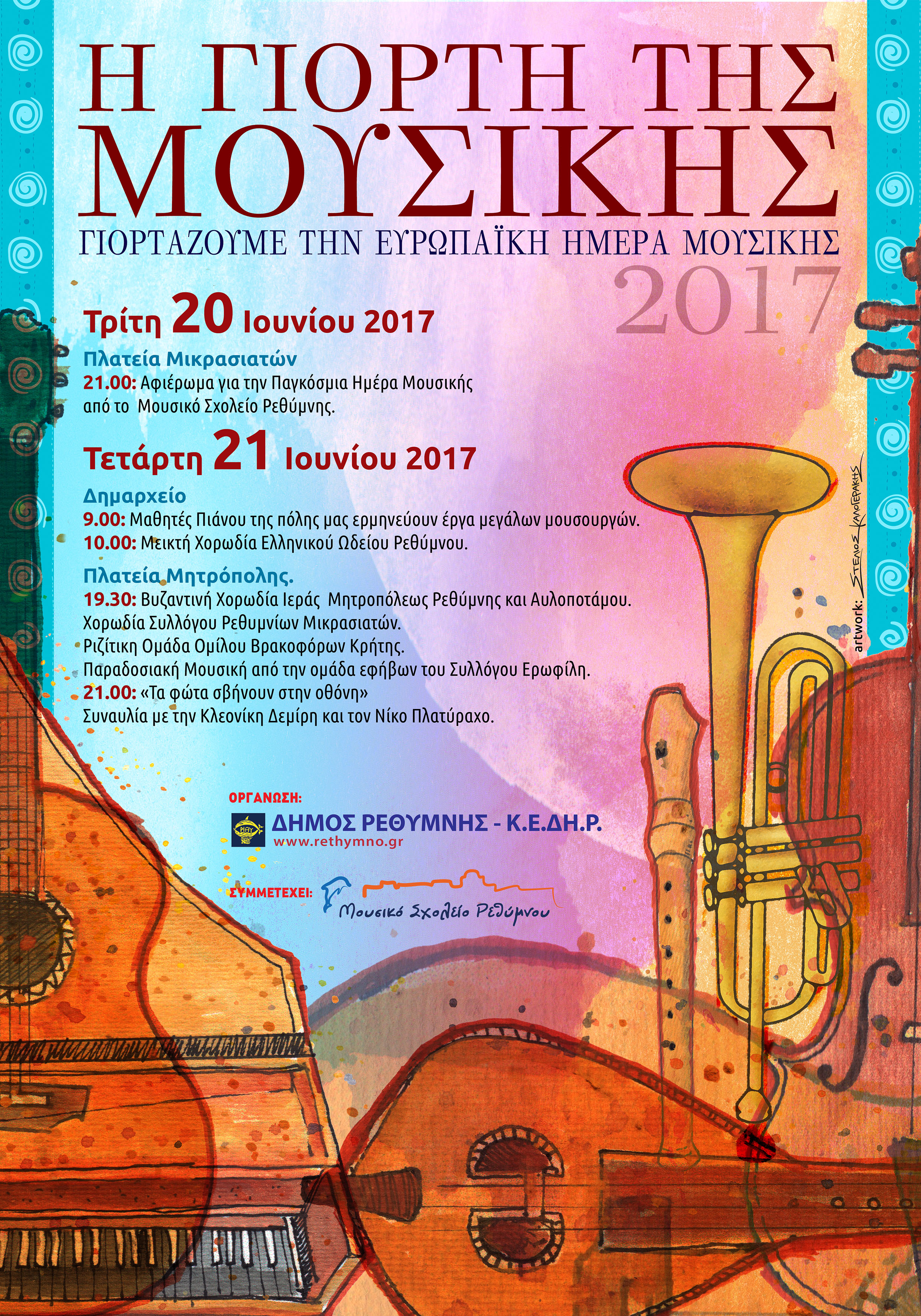 Με αφορμή την Ευρωπαϊκή Ημέρα Μουσικής η Κοινωφελής Επιχείρηση του Δήμου Ρεθύμνης διοργανώνει διήμερο μουσικών δράσεων . Συγκεκριμένα :