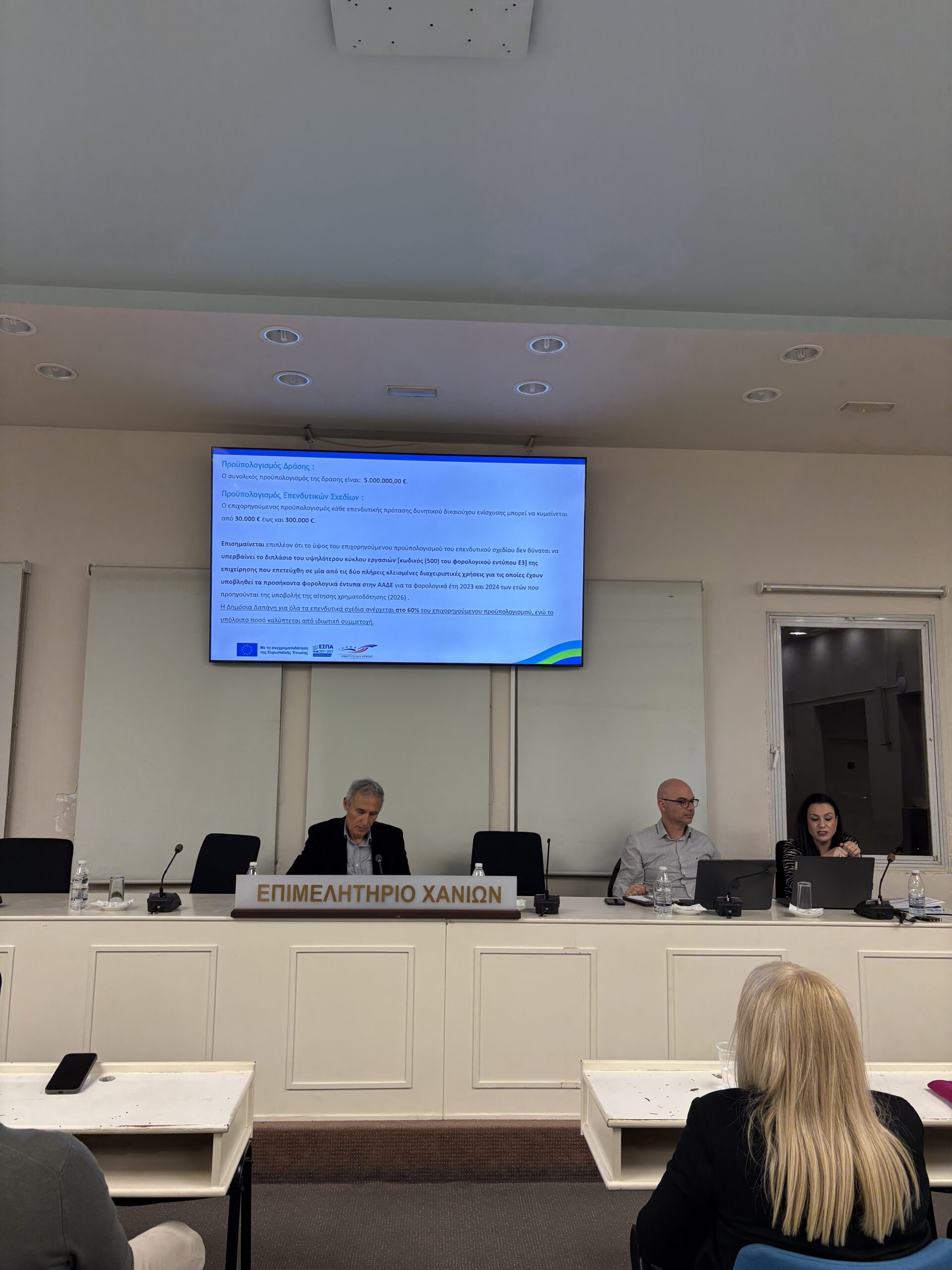 Στο Επιμελητήριο Χανίων πραγματοποιήθηκε χθες ενημερωτική εκδήλωση για την νέα δράση επιχορήγησης «ΕΠΙΧΕΙΡΩ ΠΡΑΣΙΝΑ», η οποία στοχεύει στην ενίσχυση υφιστάμενων επιχειρήσεων της Περιφέρειας Κρήτης για φιλικές προς το περιβάλλον επενδύσεις και μείωση του ενεργειακού τους αποτυπώματος, στο πλαίσιο του Προγράμματος «ΚΡΗΤΗ» 2021-2027.