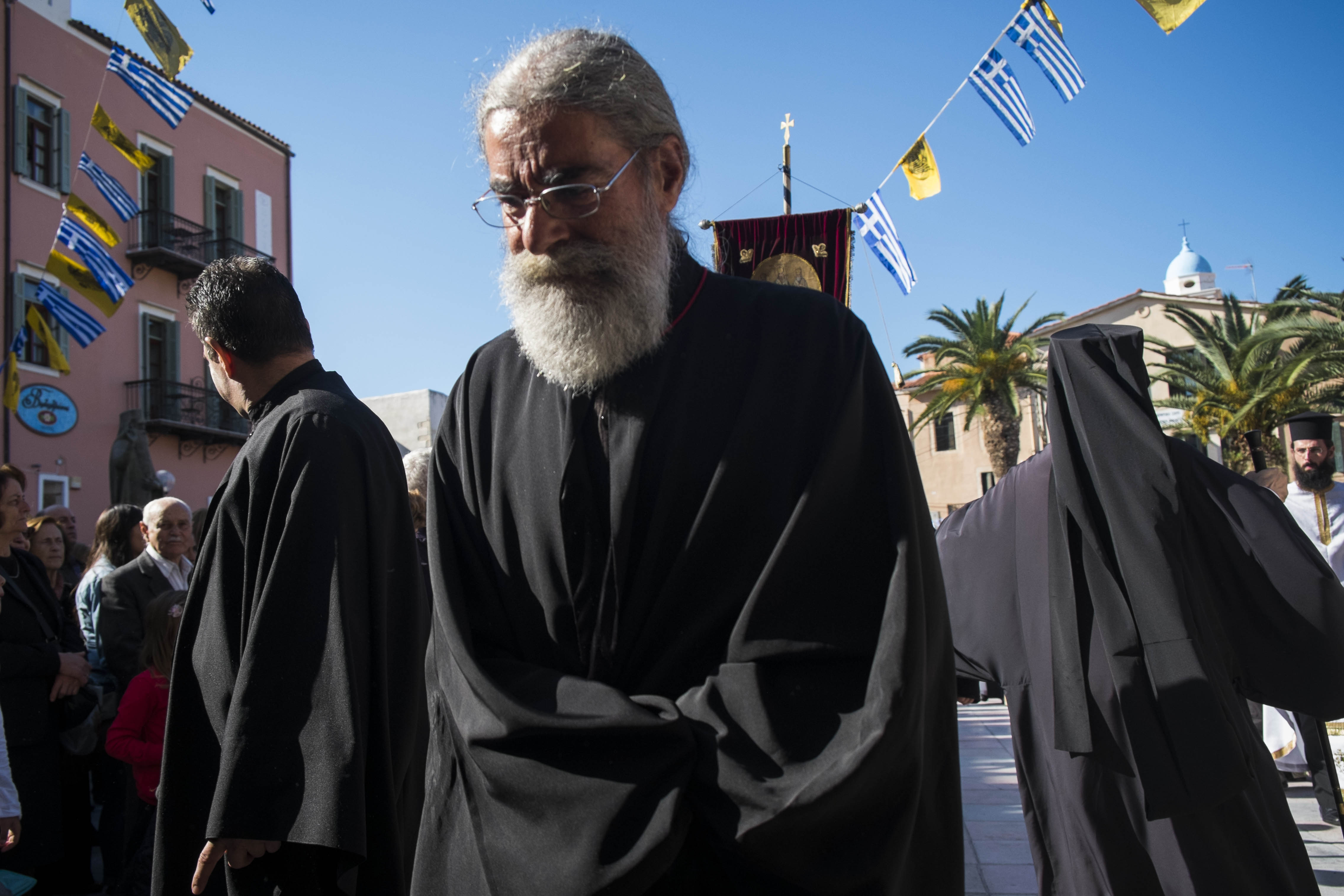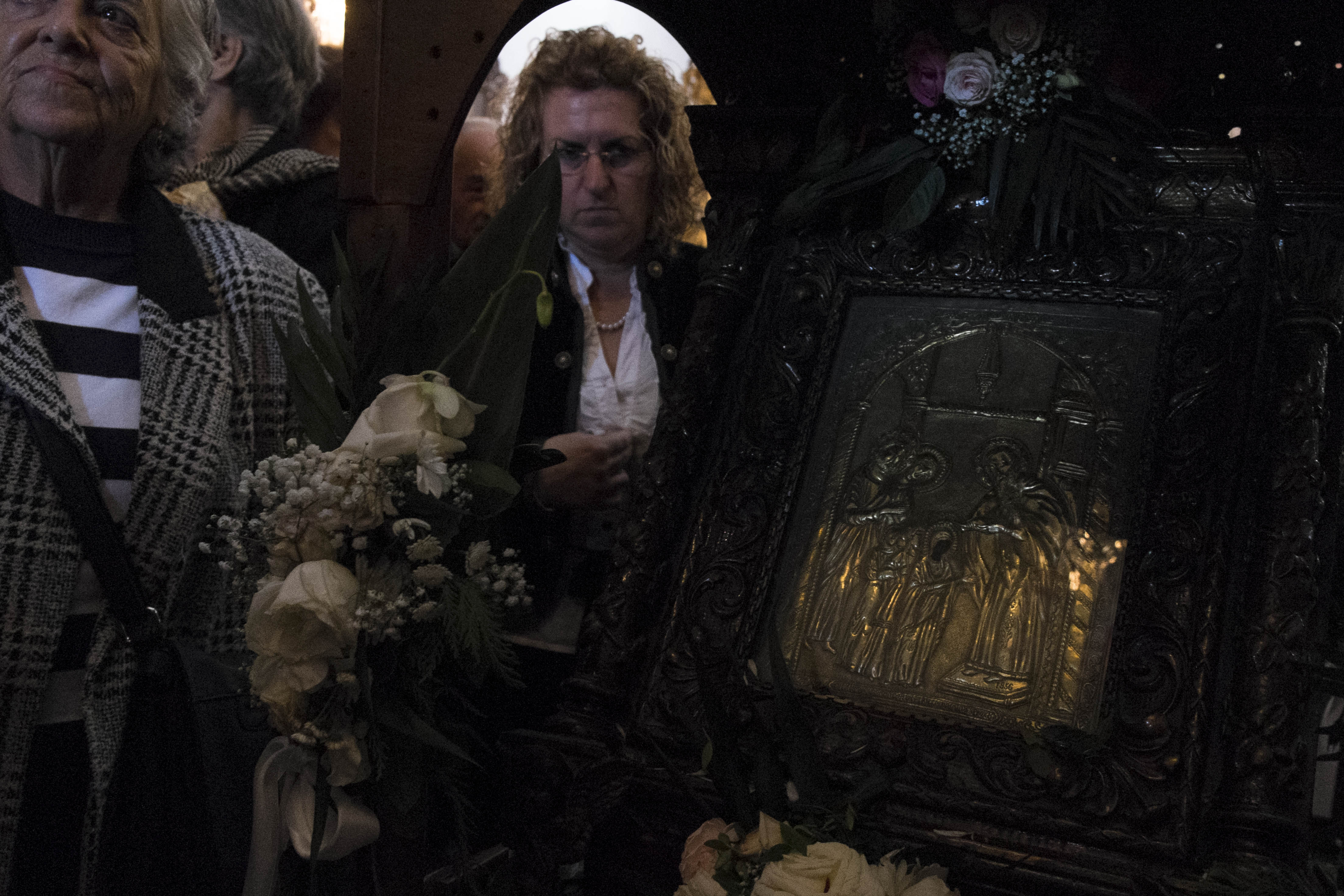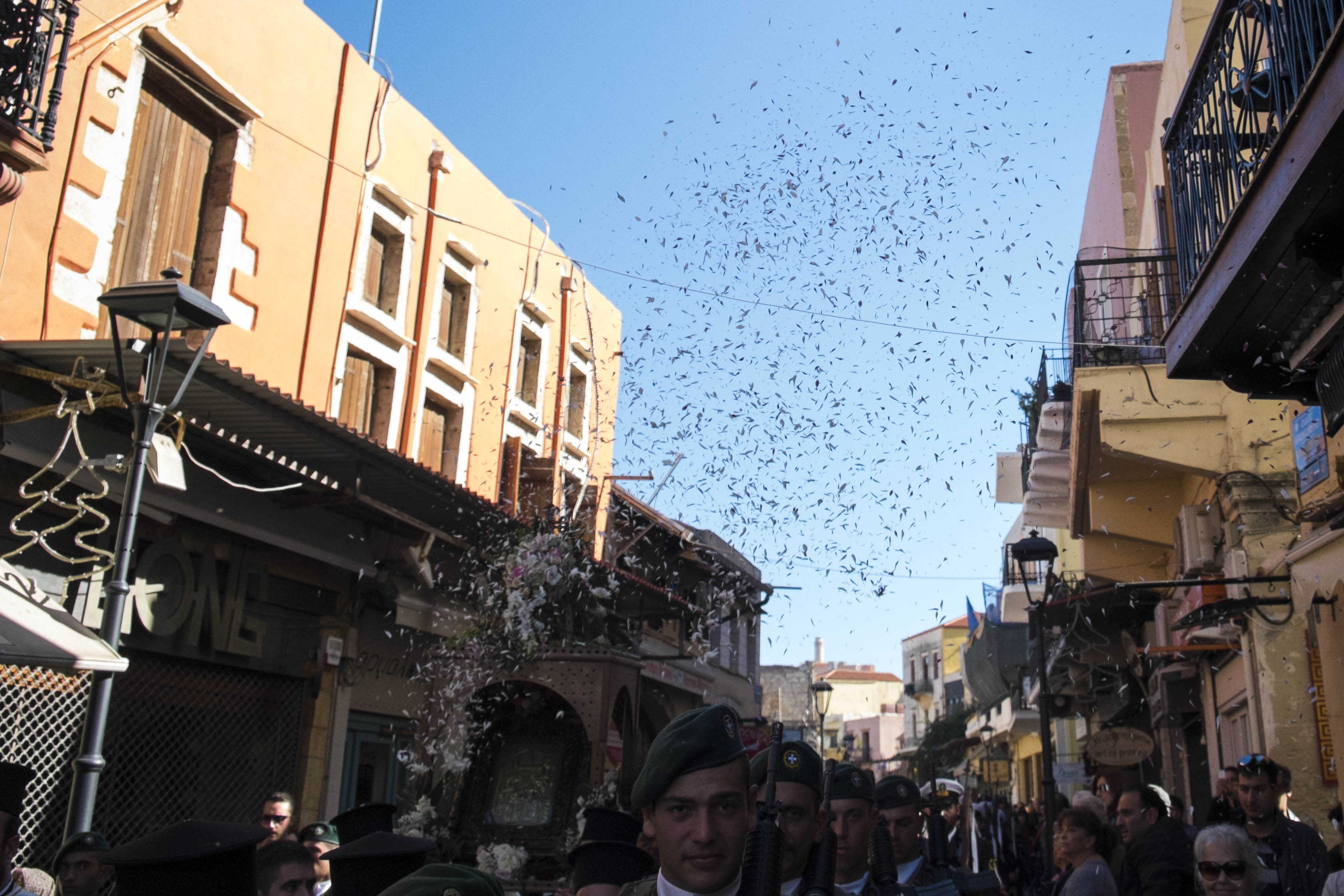 Ανά σημεία πιστοί έραιναν την πομπή με άνθη από τα μπαλκόνια τους.