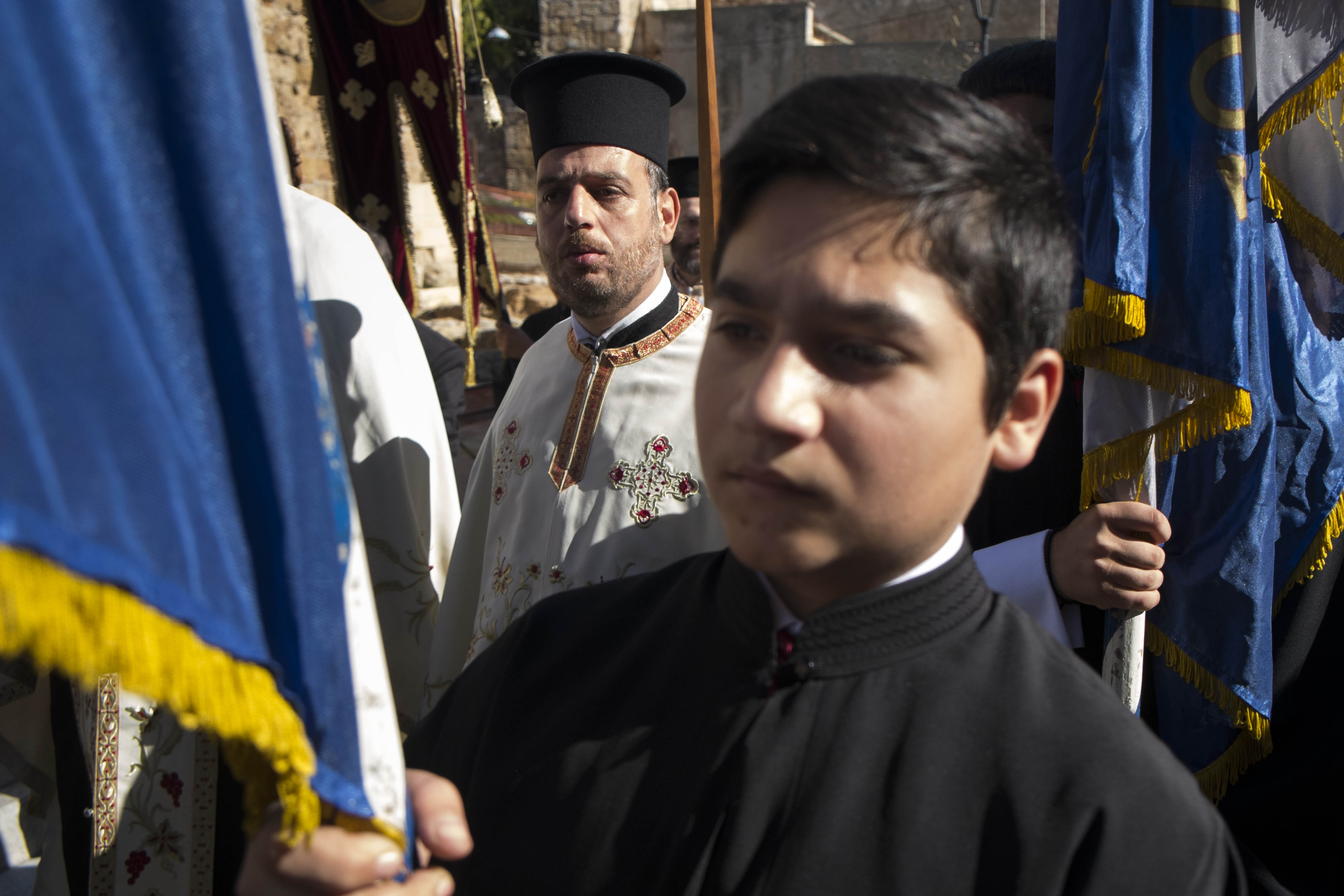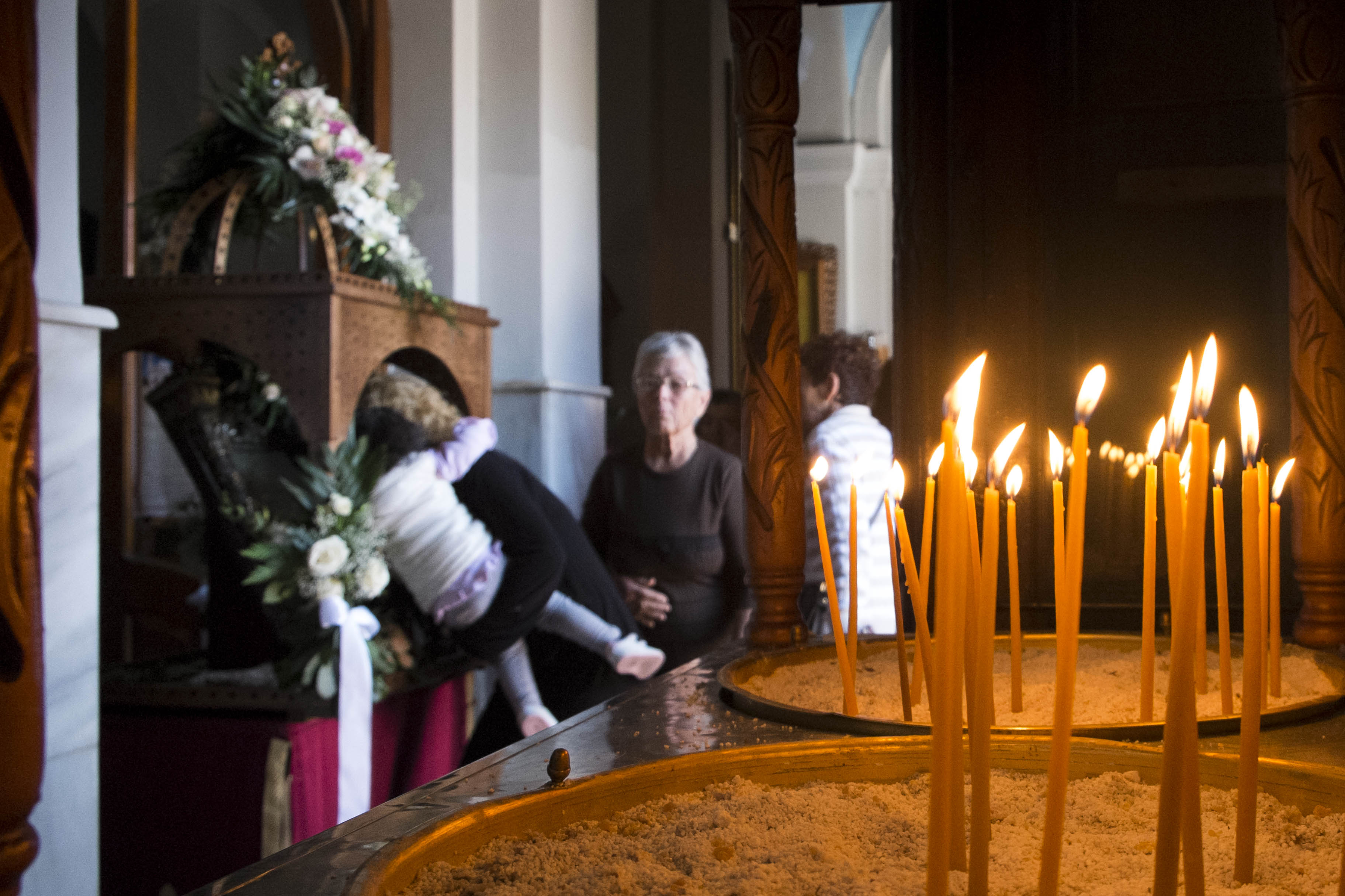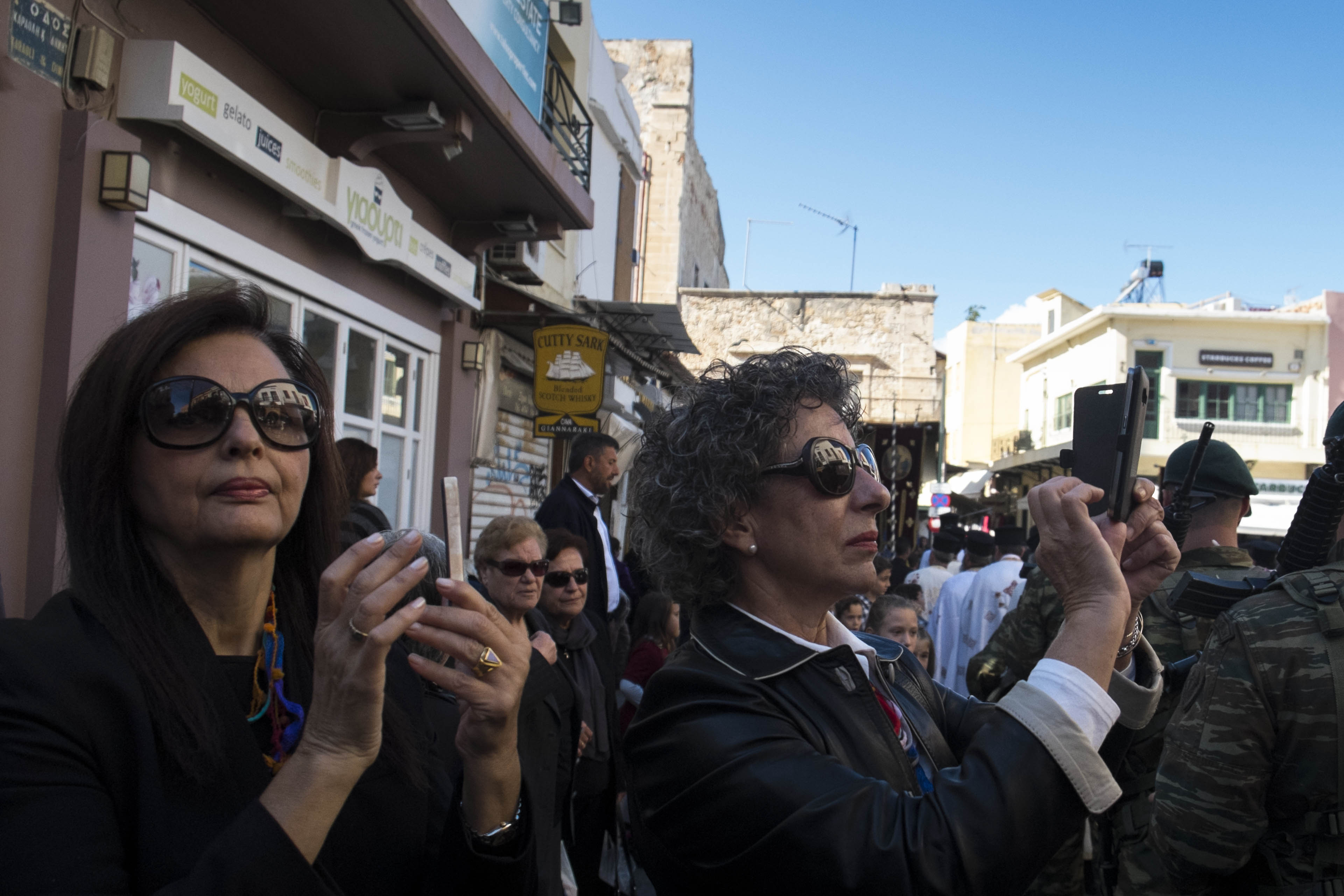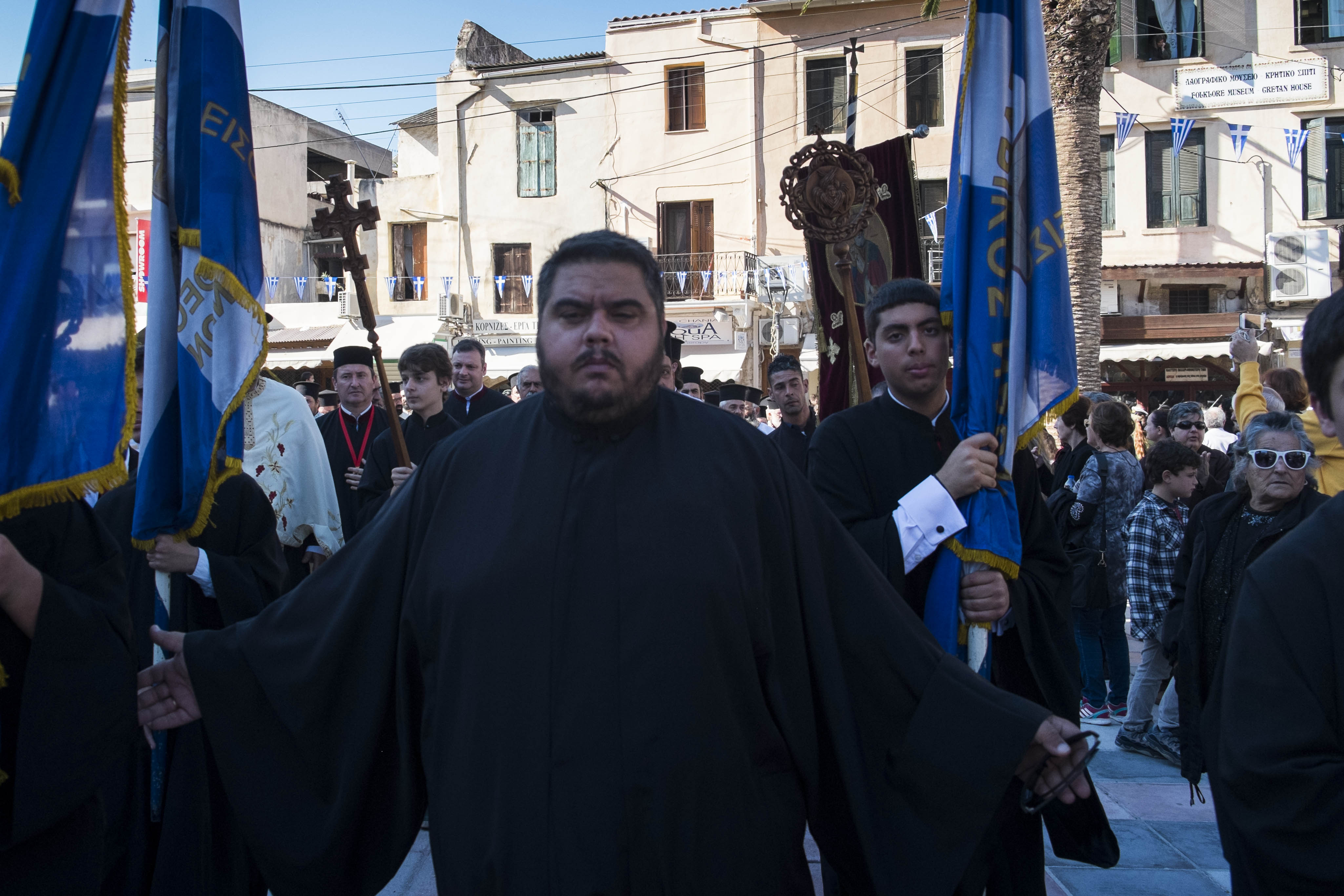 Ανά σημεία πιστοί έραιναν την πομπή με άνθη από τα μπαλκόνια τους.