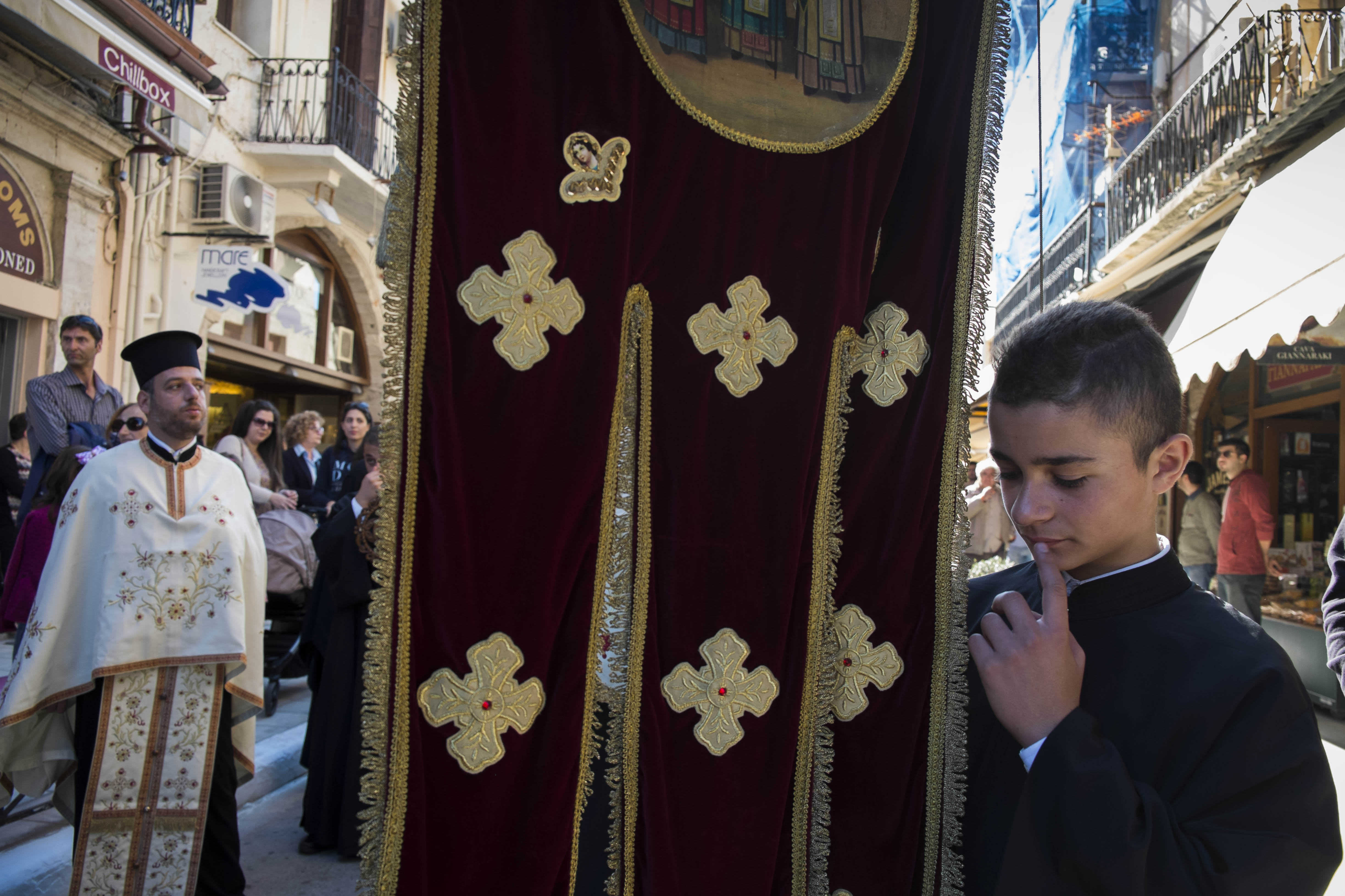 Ιερείς, εκπρόσωποι αρχών, αγήματα των ενόπλων δυνάμεων και απλοί πολίτες συνόδευσαν την εικόνα κατά τη διαδρομή της από την οδό Χάληδων προς την Πλατεία 1866, τη Λεωφόρο Κυδωνίας. Σταμάτησαν μπροστά από το δημαρχείο όπου τελέστηκε η ακολουθία της αρτοκλασίας.