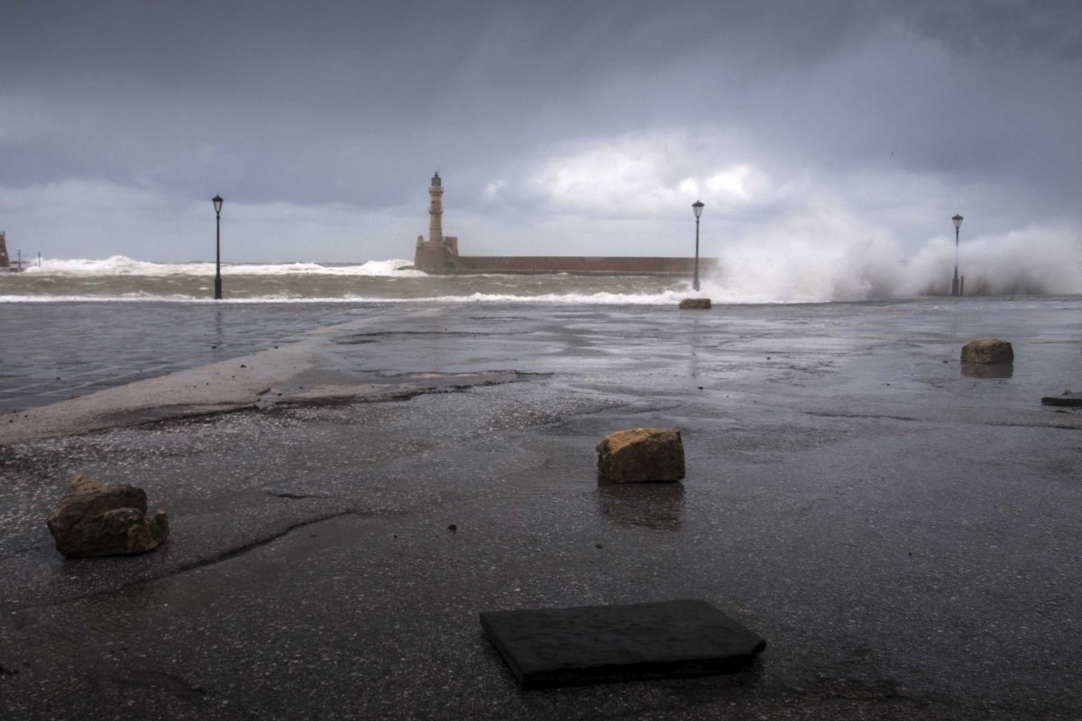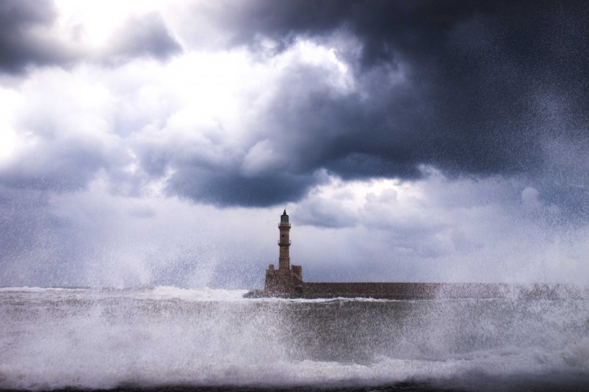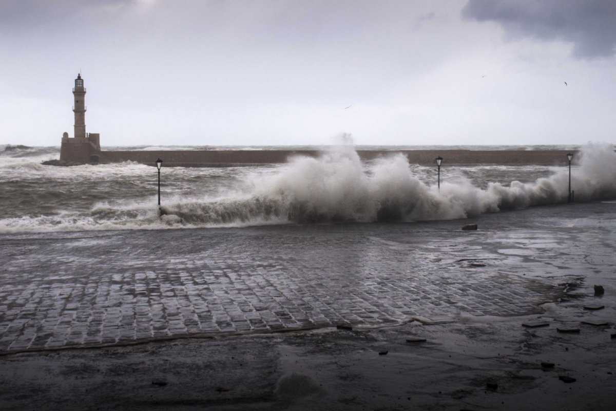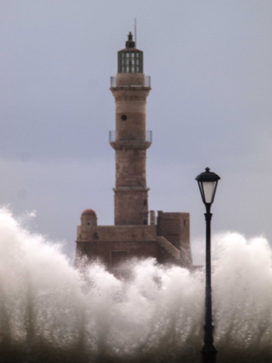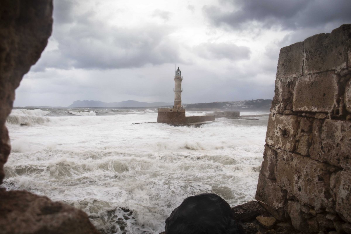 Πνίγηκε ο φάρος από τα κύμματα: Συνεχίζεται η κακοκαιρία στα Χανιά | Φωτός+Βίντεο