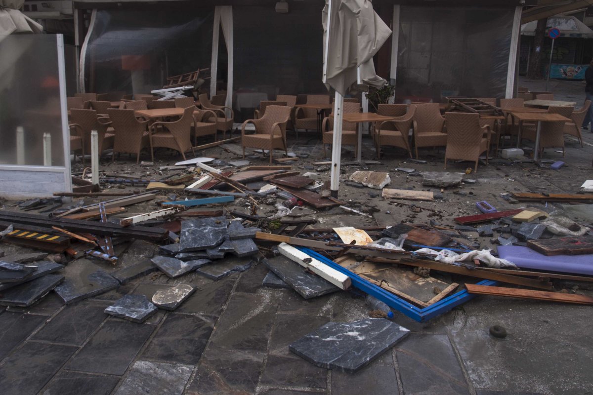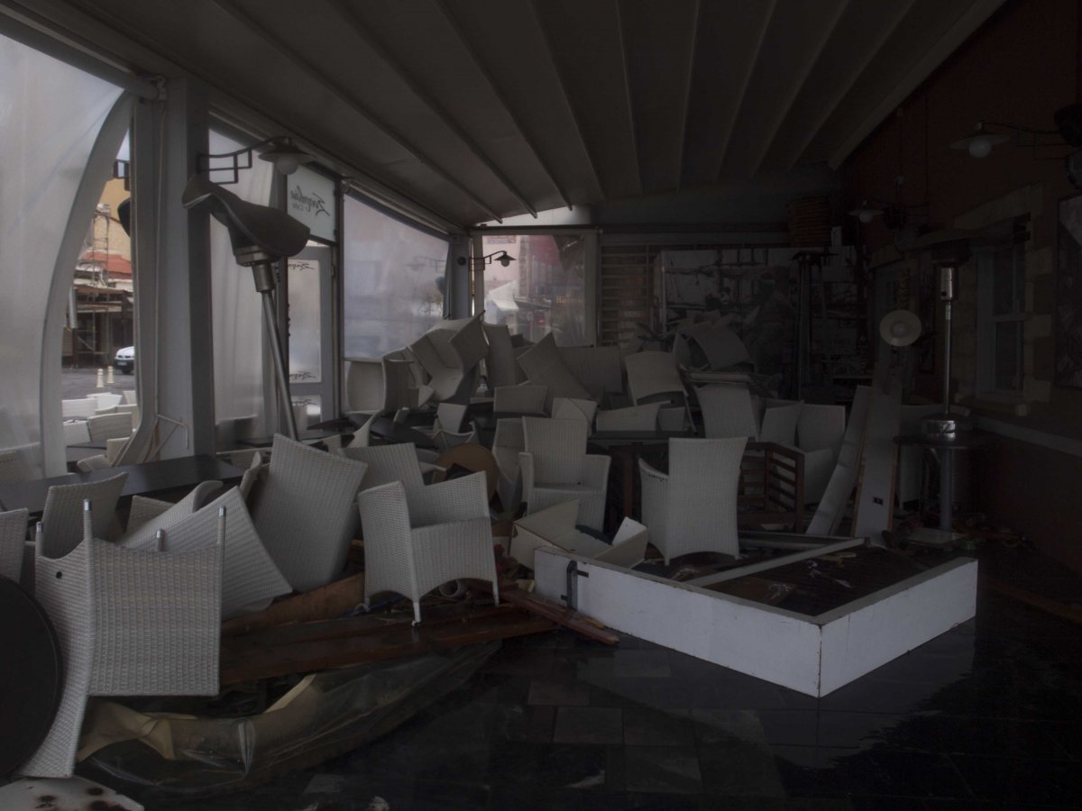 Προβλήματα έχουν παρουσιαστεί κυρίως στην Παλιά Πολή όπου πολλά καταστήματα έχουν υποστεί καταστροφές από τα κύμματα που κτυπούν τις προσόψεις των κτιρίων και παρασέρνουν ότι βρουν μπροστά τους, μέχρι και πλάκες του πεζόδρομου.