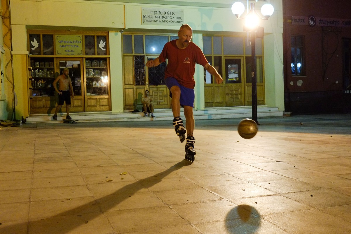 Ποδόσφαιρο με πατίνια έξω από τη Μητρόπολη Χανίων | Φωτός
