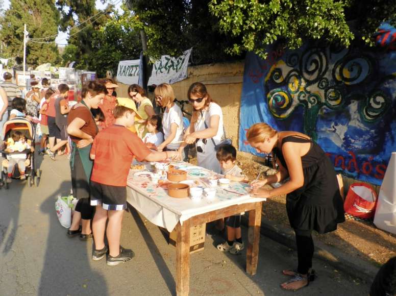 Παράλληλα, στον δρόμο, έξω από την πύλη, από τις 6 το απόγευμα και μετά υπήρχαν δράσεις: Ζωγραφική και πηλός, θεατρικό παιχνίδι, δημιουργική απασχόληση παιδιών προσχολικής ηλικίας, χαριστικό παζάρι, φαγητό.