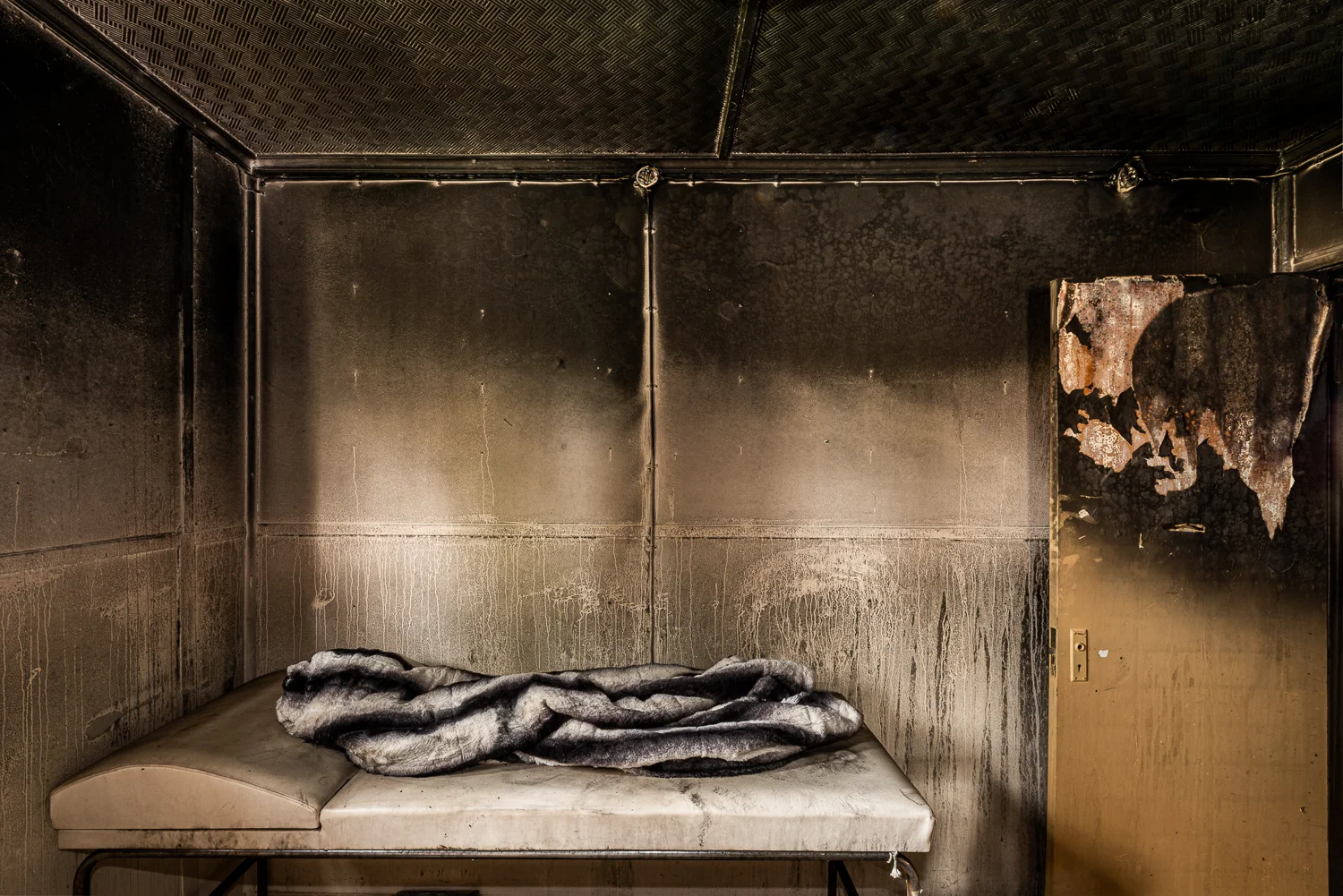 ΕΡ.: Πράγματι, μπαίνοντας στην αίθουσα, αυτό που ξεχωρίζεις είναι ότι δεν βλέπεις απλώς έναν καμένο χώρο. Πολλές φορές, ούτε καν καταλαβαίνεις ότι είναι καμένος. Κάποιες φωτογραφίες μοιάζουν σχεδόν ονειρικές.