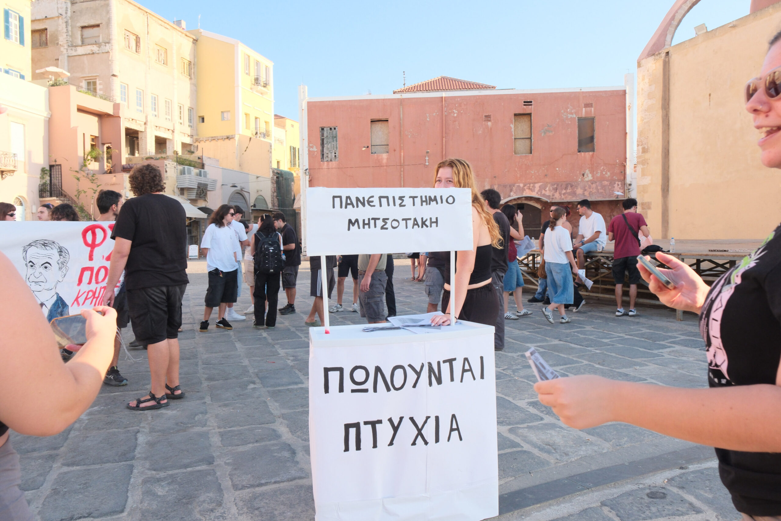 «Πό$α για πτυχίο;»: Δράση φοιτητών στα Χανιά ενάντια στα ιδιωτικά πανεπιστήμια με δημιουργικότητα και σαρκασμό | Φωτός+Βίντεο