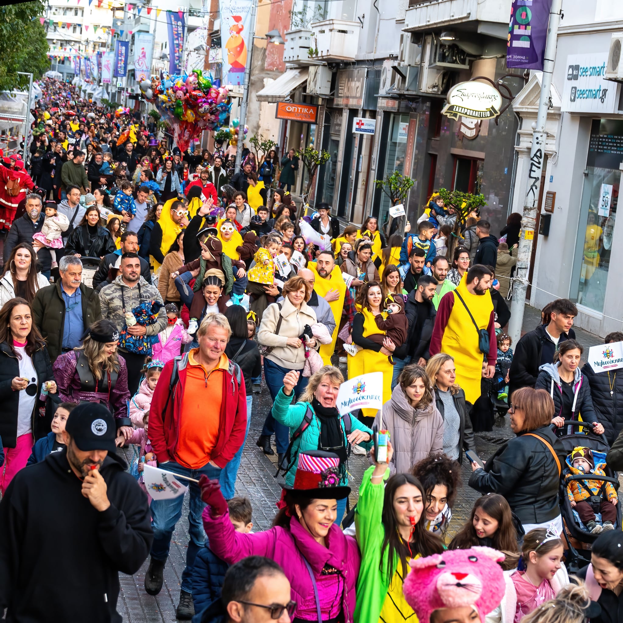 Εκατοντάδες ήταν τα παιδιά που παρέλασαν μαζί με τους γονείς τους κατά μήκος της Λεωφόρου Κουντουριώτη και δια της οδού Εθνικής Αντιστάσεως έφτασαν στην Πλατεία Μικρασιατών όπου ένα μεγάλο πάρτι περίμενε μικρούς και μεγάλους.