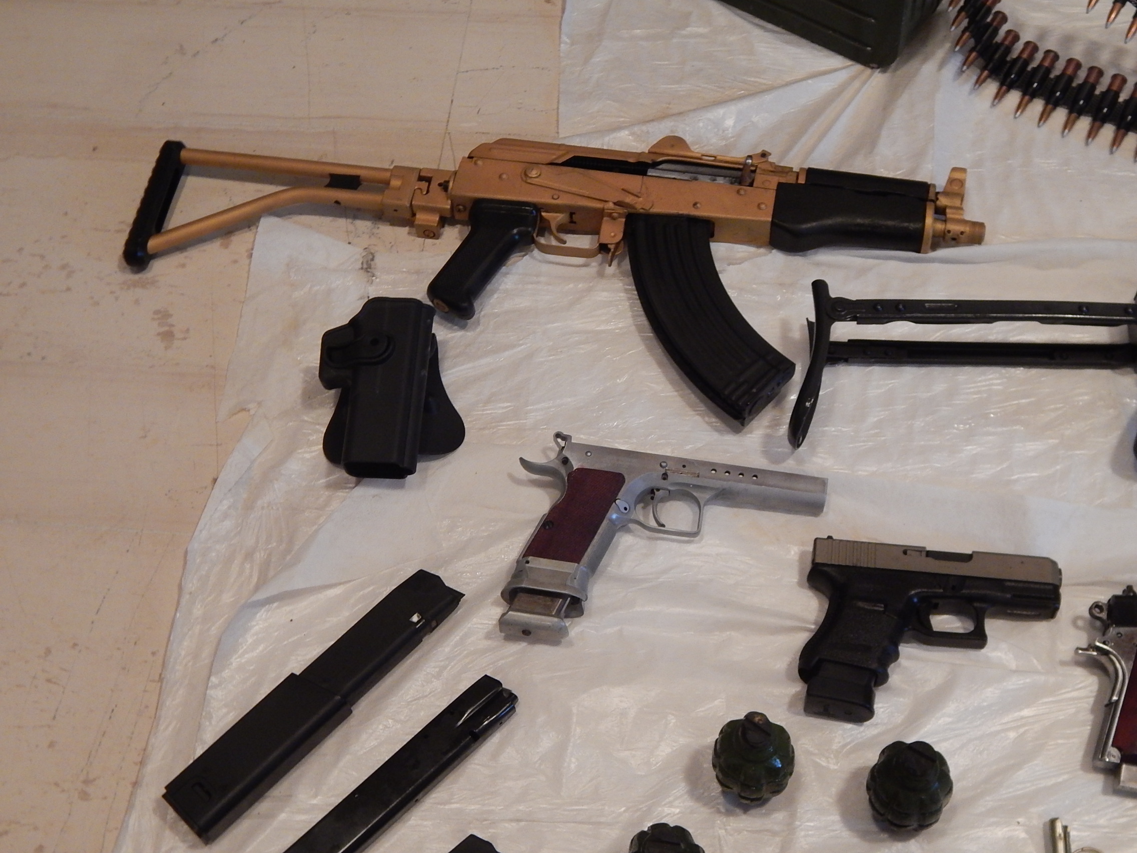 - 2 πολεμικά όπλα (KALASHNIKOV) με 2 κοντάκια και 2 γεμιστήρες