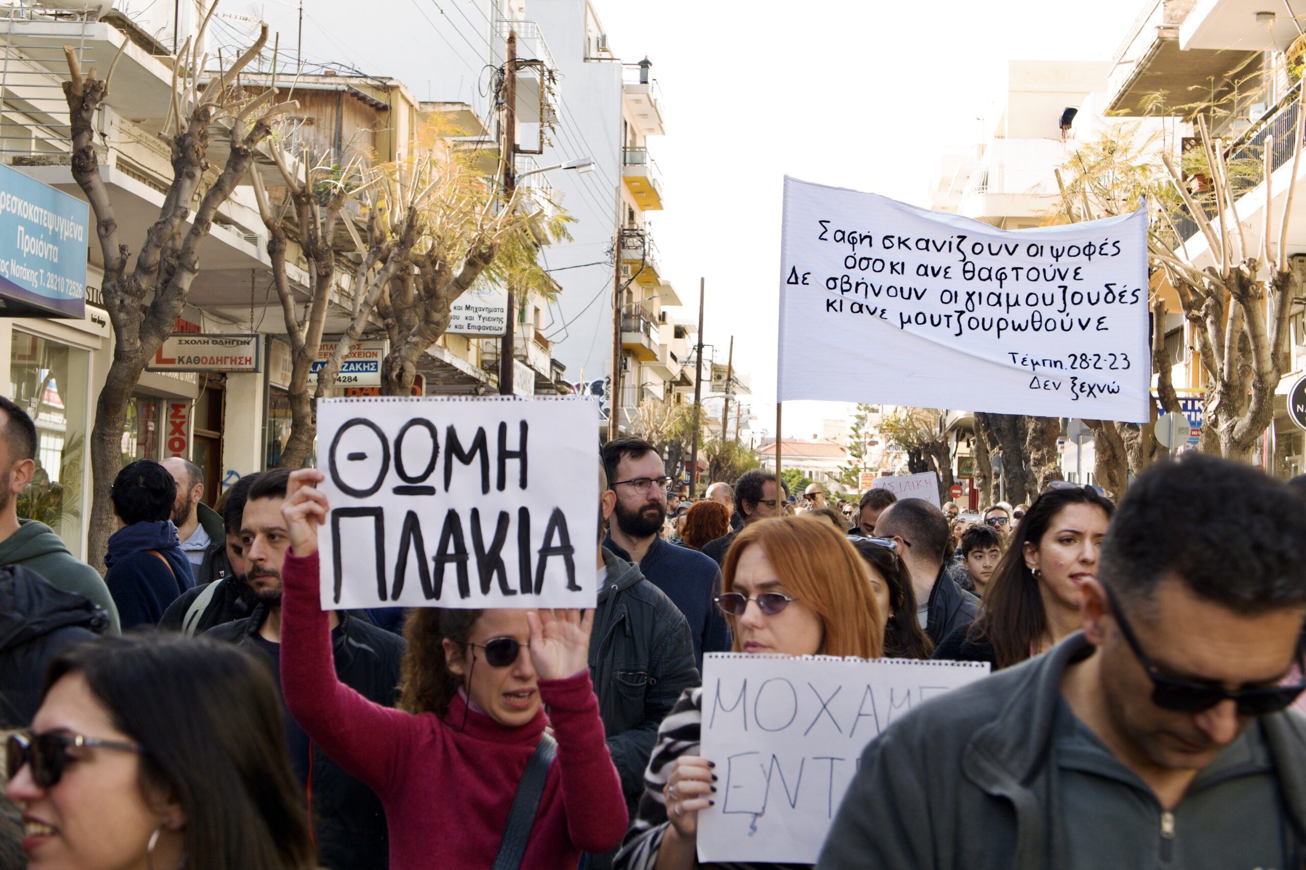 Αυτη την αινιγματική μαντινάδα σε πανό είχαμε ανιχνεύσει κατά τη διάρκεια της μεγαλειώδης πορείας για τα Τέμπη στα Χανιά στις 26 του Γενάρη, δίχως να μπορούμε να αποκρυπτογραφήσουμε το νόημά της.