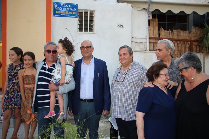 “Είναι ιδιαίτερη η συγκίνηση και η υπερηφάνεια, που αισθάνομαι σήμερα ως Δήμαρχος Χανίων, καθώς δώσαμε το όνομα του Νεοχωρίτη Αγωνιστή της Εθνικής Αντίστασης, Παύλου Μιχελιουδάκη, σε δημοτική μας οδό στη συνοικία της Νέας Χώρας, σε συνέχεια Απόφασης του Δημοτικού μας Συμβουλίου”. Στην τοποθέτηση αυτή προχώρησε ο Δήμαρχος Χανίων, Τάσος Βάμβουκας, στο πλαίσιο της τιμητικής εκδήλωσης, που διοργάνωσε ο Δήμος Χανίων σε συνεργασία με τη «Λαϊκή Συνέλευση Νέας Χώρας», την Κυριακή 25/6/2017, για την ίδρυση της Παγκρήτιας Οργάνωσης Ελεύθερων Νέων (Π.Ο.Ε.Ν.) και τον Παύλο Μιχελιουδάκη.