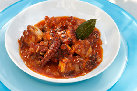 Παίρνουμε το χταπόδι, το κόβουμε σε μικρά κομμάτια, το πλένουμε καλά και το βάζουμε σε μια κατσαρόλα και στη φωτιά για να πιεί το νερό του ανακατεύοντας το για να κοκκινίσει απ’ όλα  τα μέρη. Κόβουμε μετά τα κρεμμύδια πολύ ψιλά και τα ρίχνουμε στην κατσαρόλα για να γιαχνιστούν μαζί με το χταπόδι, Μετά σβήνουμε με το κρασί και την ντομάτα και ύστερα ρίχνουμε το λάδι και το πιπέρι. Ανακατεύουμε συχνά έως ότου ψηθεί.