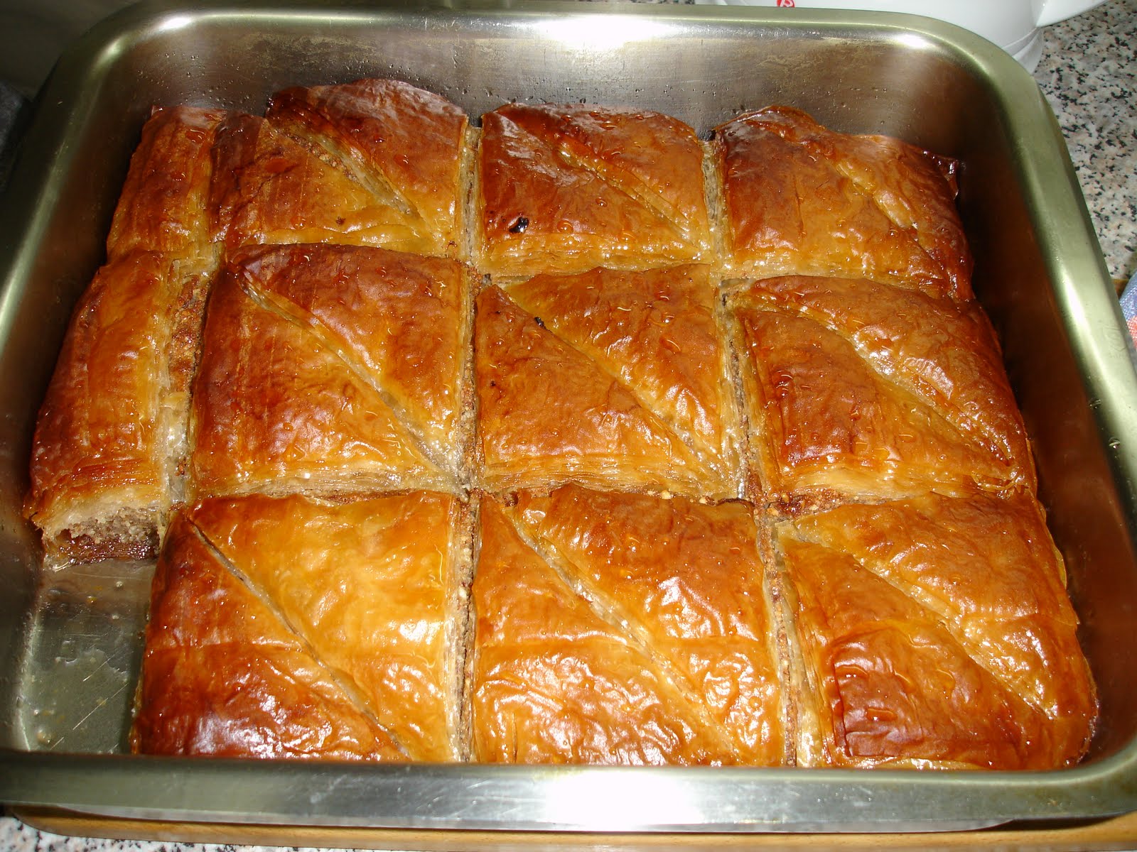 Σιρόπι: 2 ποτήρια ζάχαρη, 2 μέλι, 2 νερό και αφού ξαφρίσει το γυρνώ στο μισό.