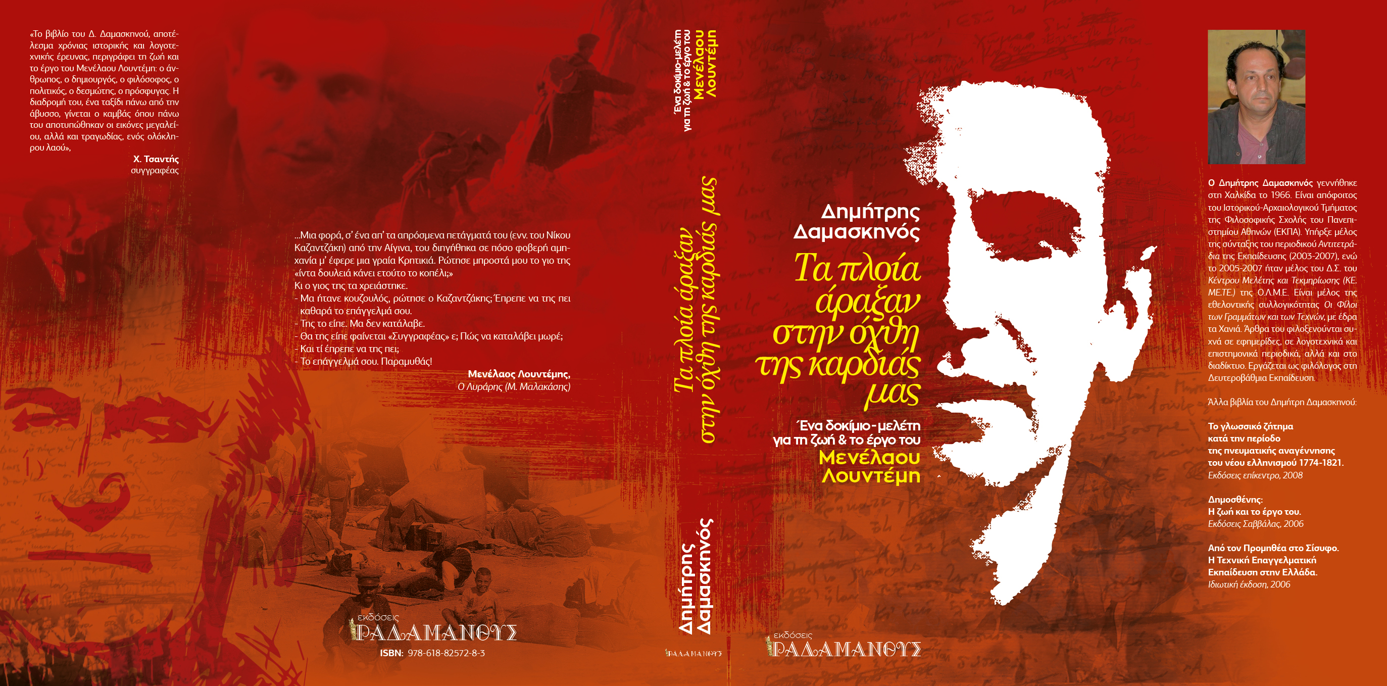 Το βιβλίο του Δημήτρη Δαμασκηνού με τίτλο: «Τα πλοία άραξαν στην όχθη της καρδιάς μας. Ένα δοκίμιο-μελέτη για τη ζωή και το έργο του Μενέλαου Λουντέμη», διαβάζεται σαν μυθιστόρημα. Φωτίζει άγνωστες πτυχές που σημάδεψαν τη ζωή και το έργο του μεγάλου συγγραφέα. Τον τοποθετεί μέσα στο ιστορικό πλαίσιο όπου και δημιούργησε. Περιέχει ντοκουμέντα που φιλοτεχνούν το πορτρέτο ενός ανθρώπου καθημερινού, ο οποίος αντιμετώπισε δύσκολες προσωπικές, οικονομικές, οικογενειακές και πολιτικοκοινωνικές καταστάσεις. Καταστάσεις που έπαιξαν καθοριστικό ρόλο στη διαμόρφωση της προσωπικότητάς του, ενώ ταυτόχρονα άφησαν ανεξίτηλα σημάδια στο ίδιο του το έργο.
