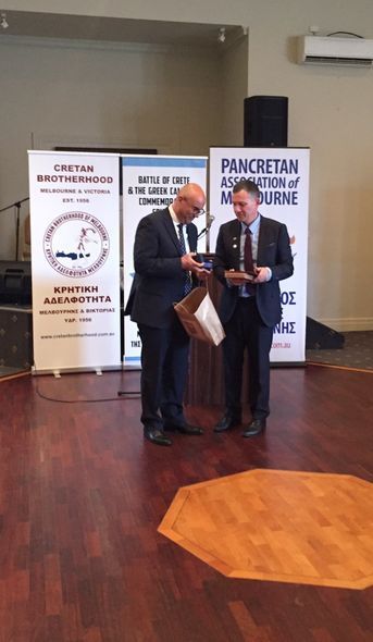 Σε ομιλία του, στο πλαίσιο εκδήλωσης, που οργάνωσαν τα ομογενειακά σωματεία προς τιμή της ελληνικής αποστολής, της κυβέρνησης της Αυστραλίας, της Νέας Ζηλανδίας, και των τριών βετεράνων Αυστραλών μαχητών, που κατοικούν στη Μελβούρνη, ο Δήμαρχος Χανίων επεσήμανε ότι είναι ηθική μας υποχρέωση να αποδίδουμε την οφειλόμενοι τιμή σε εκείνους, που πιστοί στα ιδανικά της ελευθερίας πάλεψαν και θυσιάστηκαν σε μια κοινή προσπάθεια αποτροπής του εισβολέα.