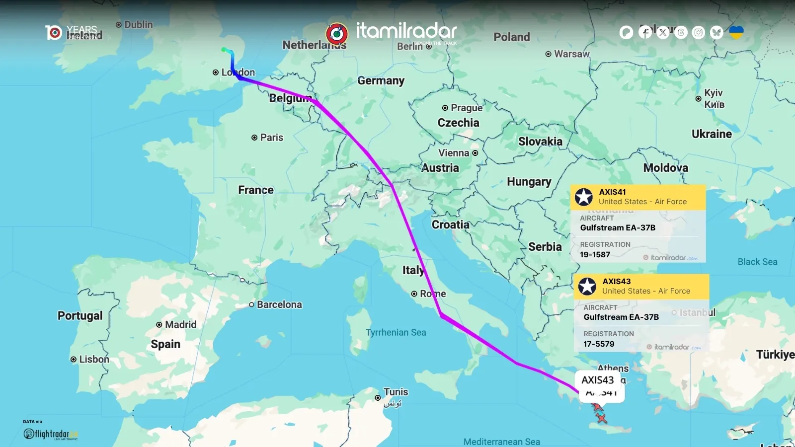 Όπως δείχνει η καταγραφή των ραντάρ, τα αεροπλάνα διέσχισαν τους ουρανούς του Βελγίου, της Γερμανίας, των Άλπεων και ολόκληρης της ιταλικής χερσονήσου, με κατεύθυνση νοτιοανατολικά. Αυτή η στάση στη Μεσόγειο είναι κρίσιμη, καθώς τα αεροσκάφη κατευθύνονται προς την περιοχή ευθύνης της CENTCOM (Κεντρική Διοίκηση των Ηνωμένων Πολιτειών), η οποία καλύπτει το θέατρο επιχειρήσεων της Μέσης Ανατολής.