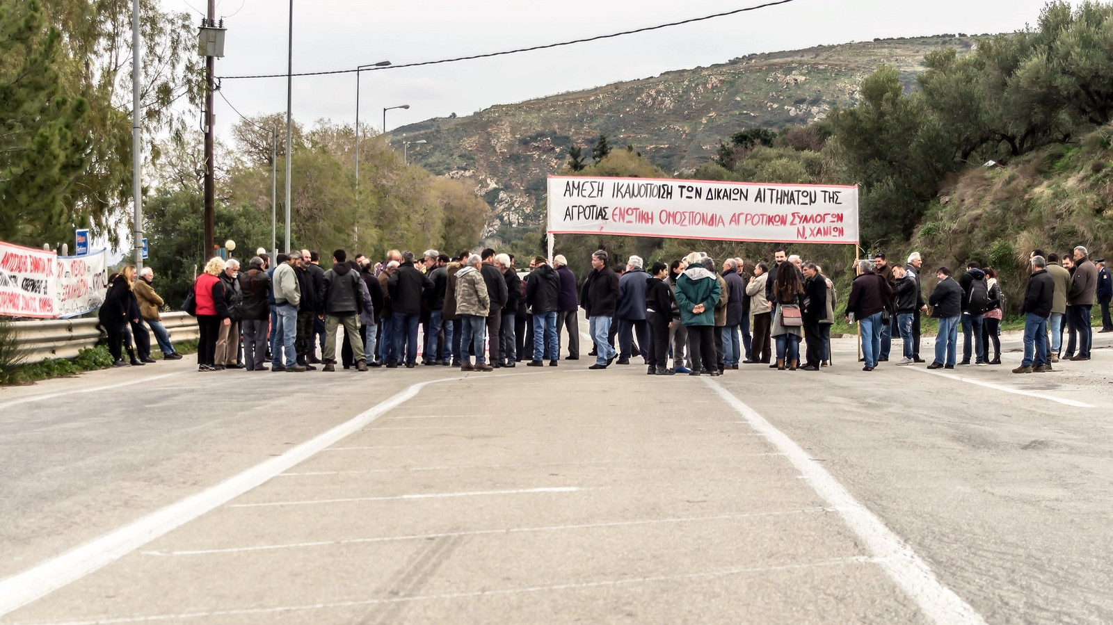 Ακολούθησε δυναμική μηχανοκίνητη πορεία στον κόμβο των Μεγάλων Χωραφιών στην Εθνική Οδό Χανίων – Ρεθύμνου όπου στήθηκε μπλόκο, ενώ το μεσημέρι πραγματοποιήθηκε ολιγόλεπτο συμβολικό κλείσιμο του δρόμου. Στα Μεγάλα Χωράφια υπήρχε ισχυρή αστυνομική παρουσία