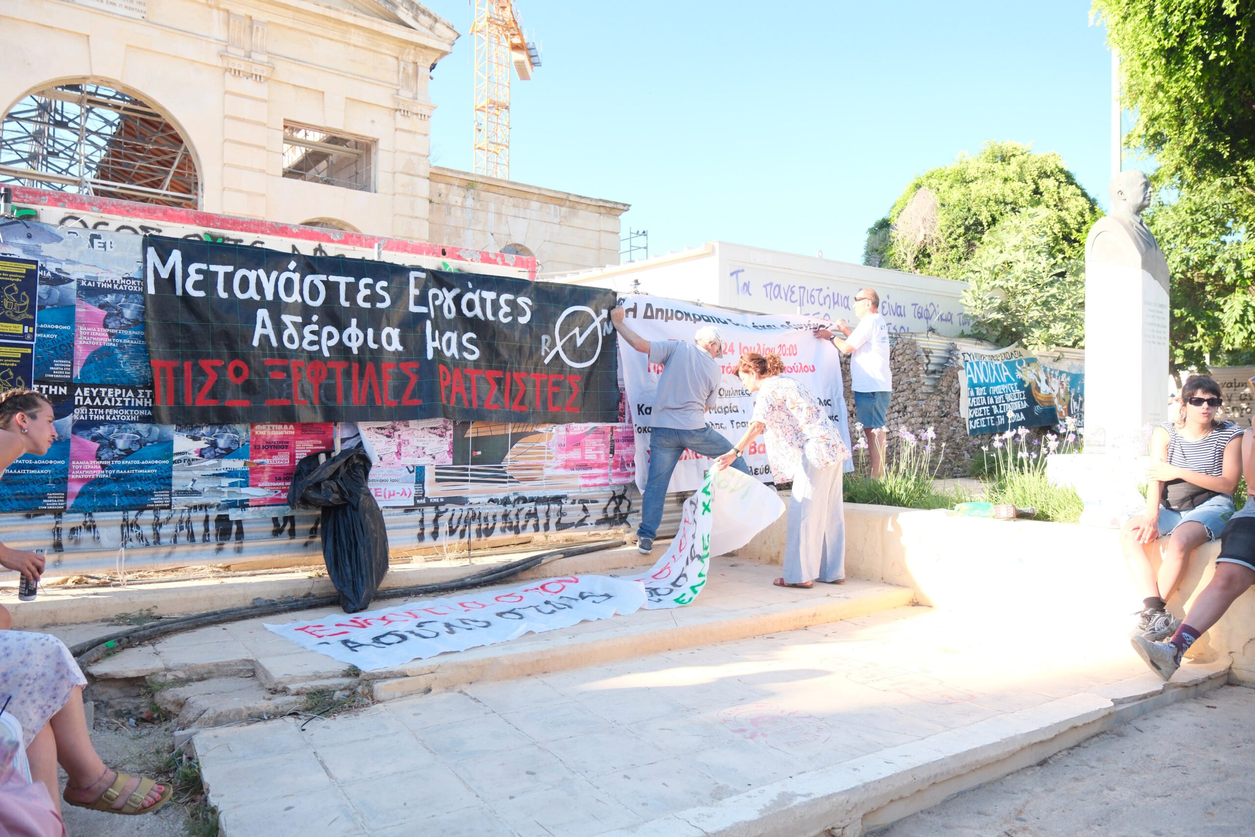 «Σε ένα νησί που έχει διαβρωθεί από τον τουρισμό και τον πλουτισμό των λίγων, που έχει γίνει ορμητήριο πολέμου για κάθε ιμπεριαλιστή δολοφόνο, είναι επικίνδυνο να μιλάμε για κρίση λόγω μεταναστών. Η κρίση είναι στην εξουσία, το πρόβλημα είναι το ίδιο το σύστημα που καταστρέφει τις ζωές μας».