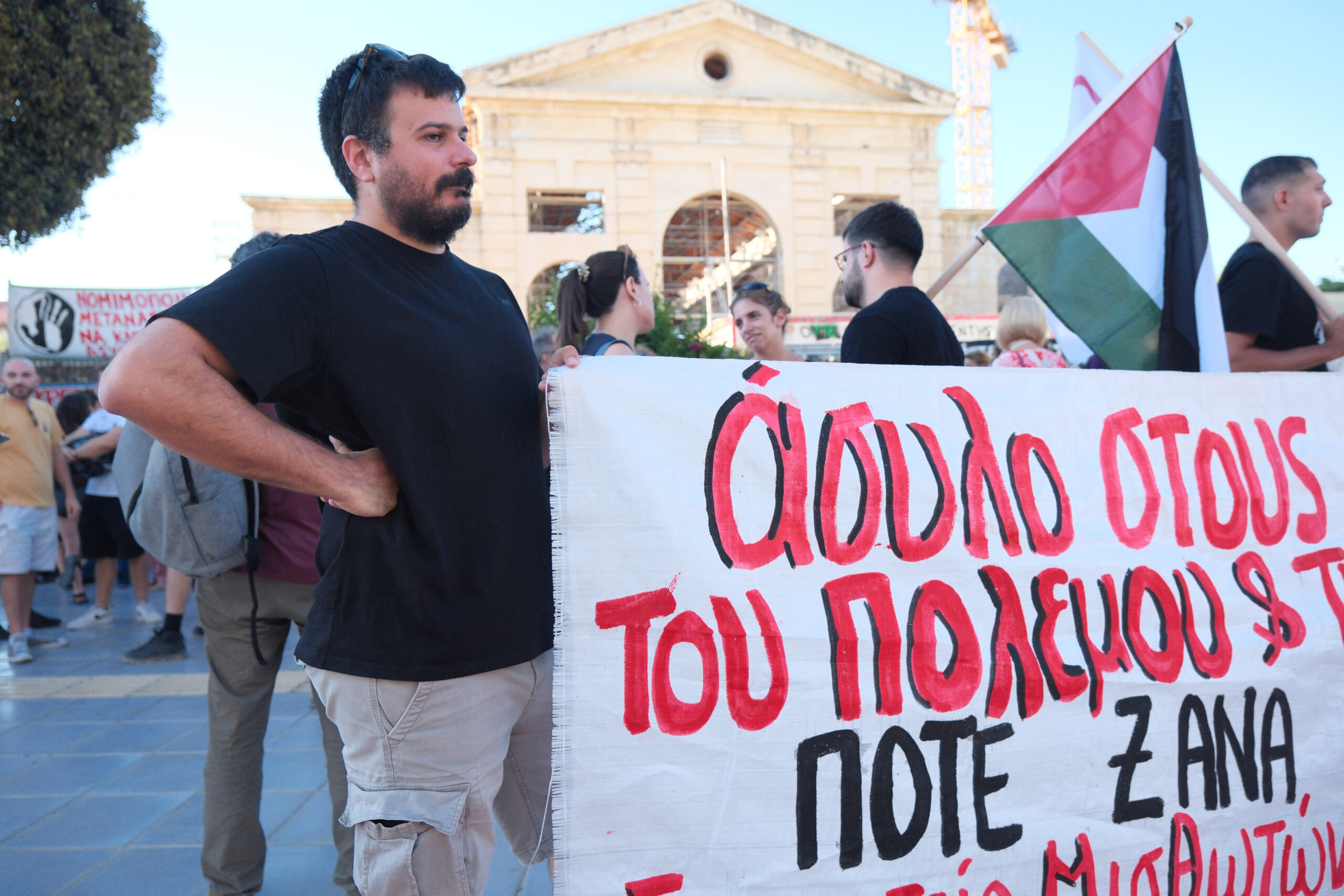 Λίγες ώρες αργότερα, στις 20:00, στην πλατεία της Σούδας, πραγματοποιείται συγκέντρωση κατά της παρουσίας μεταναστών στην Κρήτη, με εμφανή συνθήματα περί «εθνικής και πολιτισμικής απειλής». Κεντρικός ομιλητής της εκδήλωσης είναι ο Νικόλαος Παπαδόπουλος, βουλευτής Β’ Θεσσαλονίκης, ανεξάρτητος αλλά εκλεγμένος με το κόμμα «Νίκη», ο οποίος έγινε γνωστός από την εμπλοκή του στην καταστροφή έργων στην Εθνική Πινακοθήκη. Η εκδήλωση έχει χαρακτήρα αντιμεταναστευτικής κινητοποίησης, με αιχμές κατά της κυβέρνησης, των ΜΚΟ και των πολιτών που εκφράζουν αλληλεγγύη.