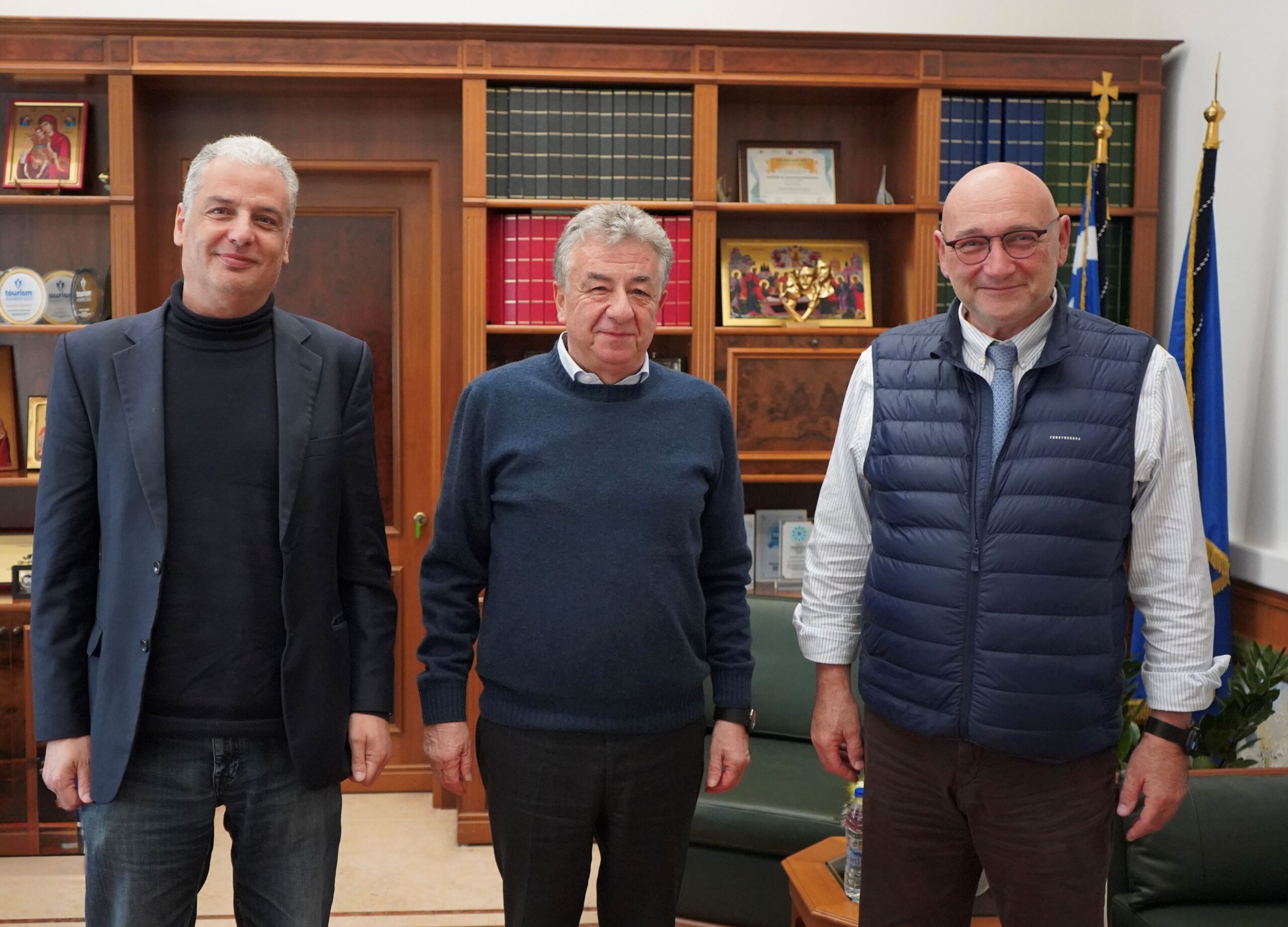 Ο Περιφερειάρχης Κρήτης Σταύρος Αρναουτάκης υποδέχθηκε στο Ηράκλειο τον Πρύτανη του Πανεπιστημίου Κρήτης Γιώργο Κοντάκη και τον Αντιπρύτανη Οικονομικών και Υποδομών Γεώργιο Σταματόπουλο, σε μια συνεργασία που εστίασε στον συντονισμό των απαιτούμενων ενεργειών για την ολοκλήρωση των έργων.