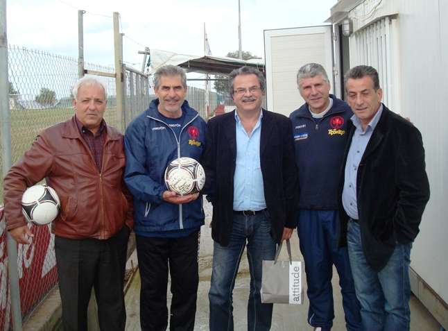 Οι ποδοσφαιριστές της Π.Α.Ε Πλατανιά έκαναν δώρο στο Δήμαρχο μια μπάλα ποδοσφαίρου με τις υπογραφές όλων των ποδοσφαιριστών της Π.Α.Ε, καθώς και του προπονητή τους.
