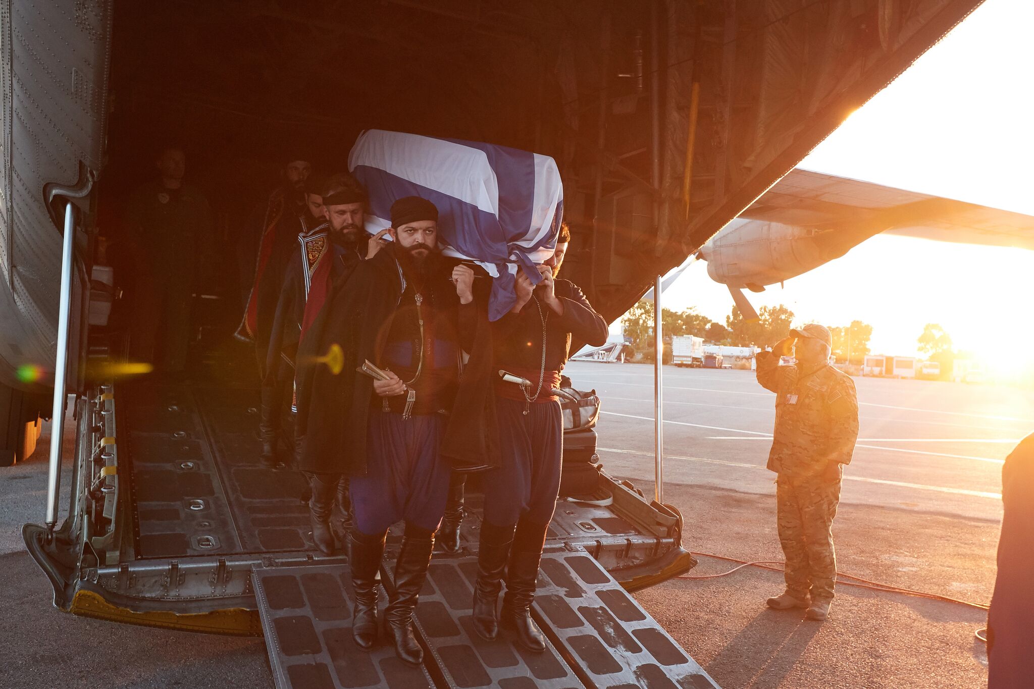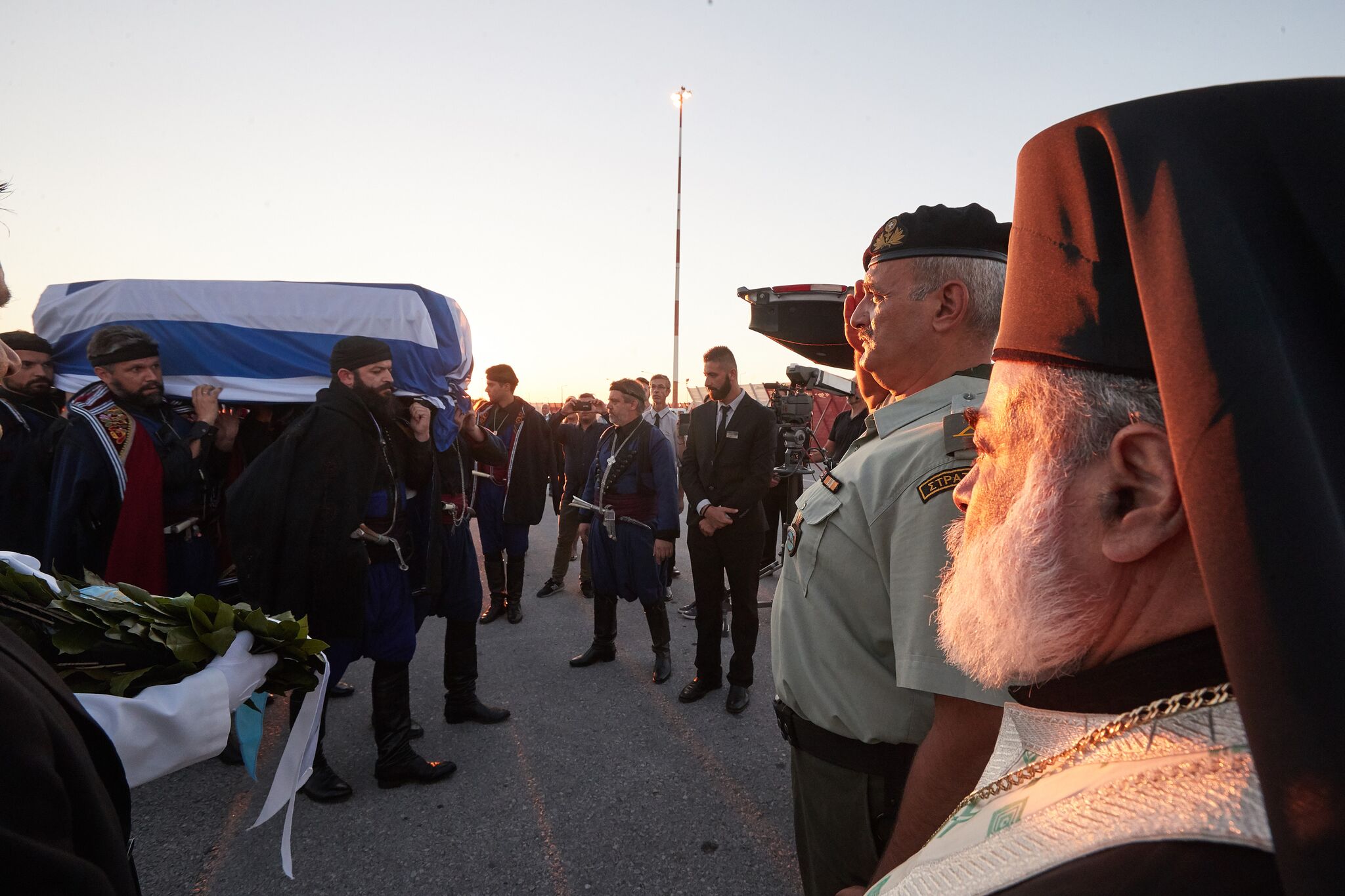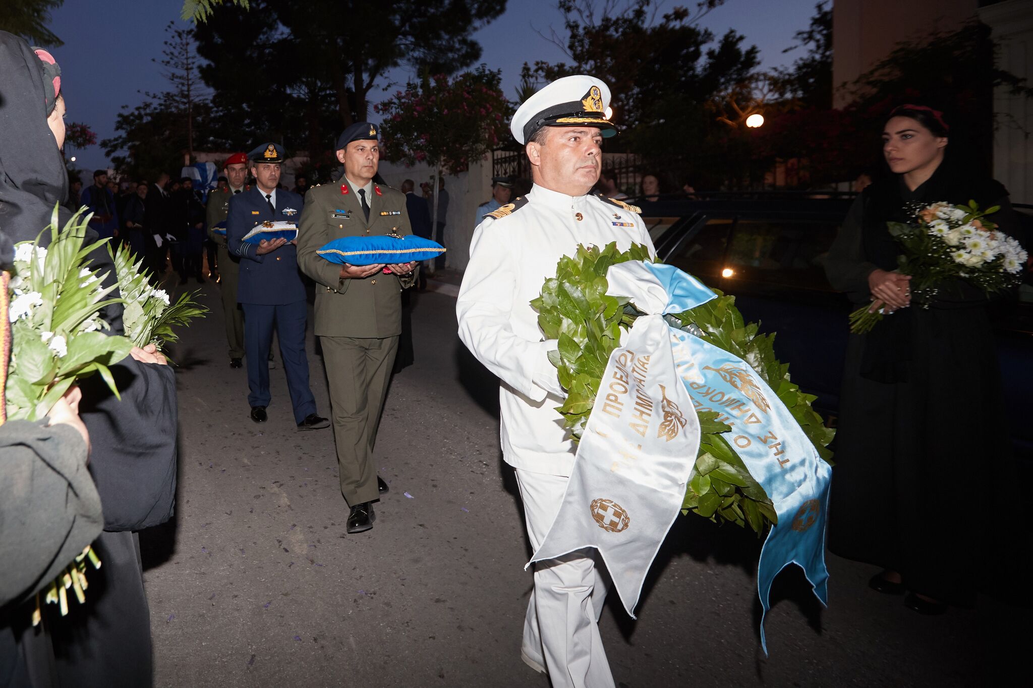 Να σημειώσουμε ότι στην εκκλησία υπήρξε άγημα του στρατού ξηράς, του ναυτικού και της αεροπορίας που απέδωσε τιμές ενώ στην περιοχή υπάρχει ισχυρή αστυνομική παρουσία.