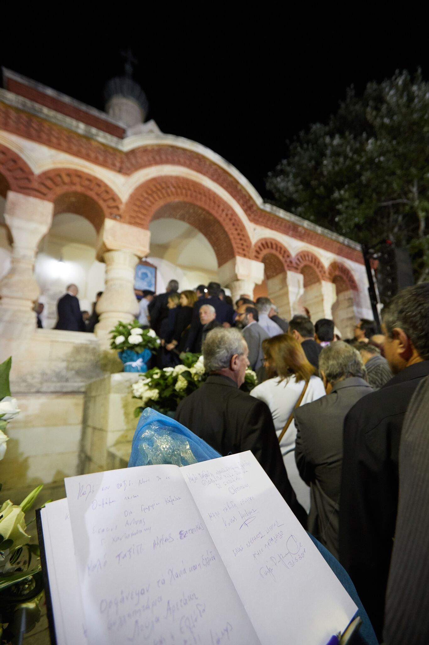 Οι πολίτες, περνούν από την εκκλησία, ανάβουν ένα κερί και γράφουν τα μηνύματά τους σε βιβλίο που έχει τοποθετηθεί στην είσοδο της εκκλησίας, για τον Κωνσταντίνο Μητσοτάκη.
