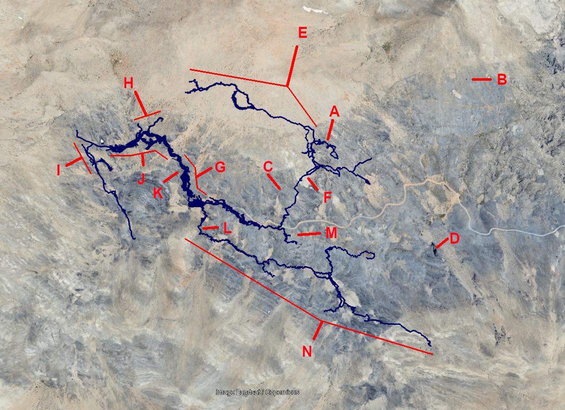 Η φετινή εξερεύνηση επικεντρώθηκε στις ακόλουθες περιοχές του σπηλαίου: