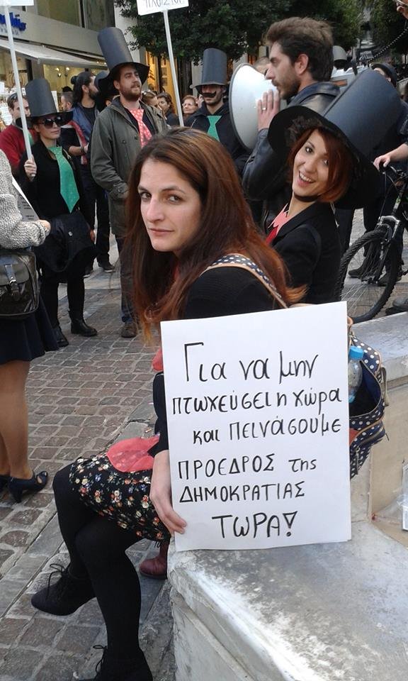 Ελάτε μαζί μας, να σώσουμε τη χώρα και την πάρτη μας από τους αιμοδιψείς κομμουνιστές του Τσίπρα και του Λαφαζάνη. Αφήστε μας να πλουτίσουμε με την ησυχία μας, επιτέλους.”