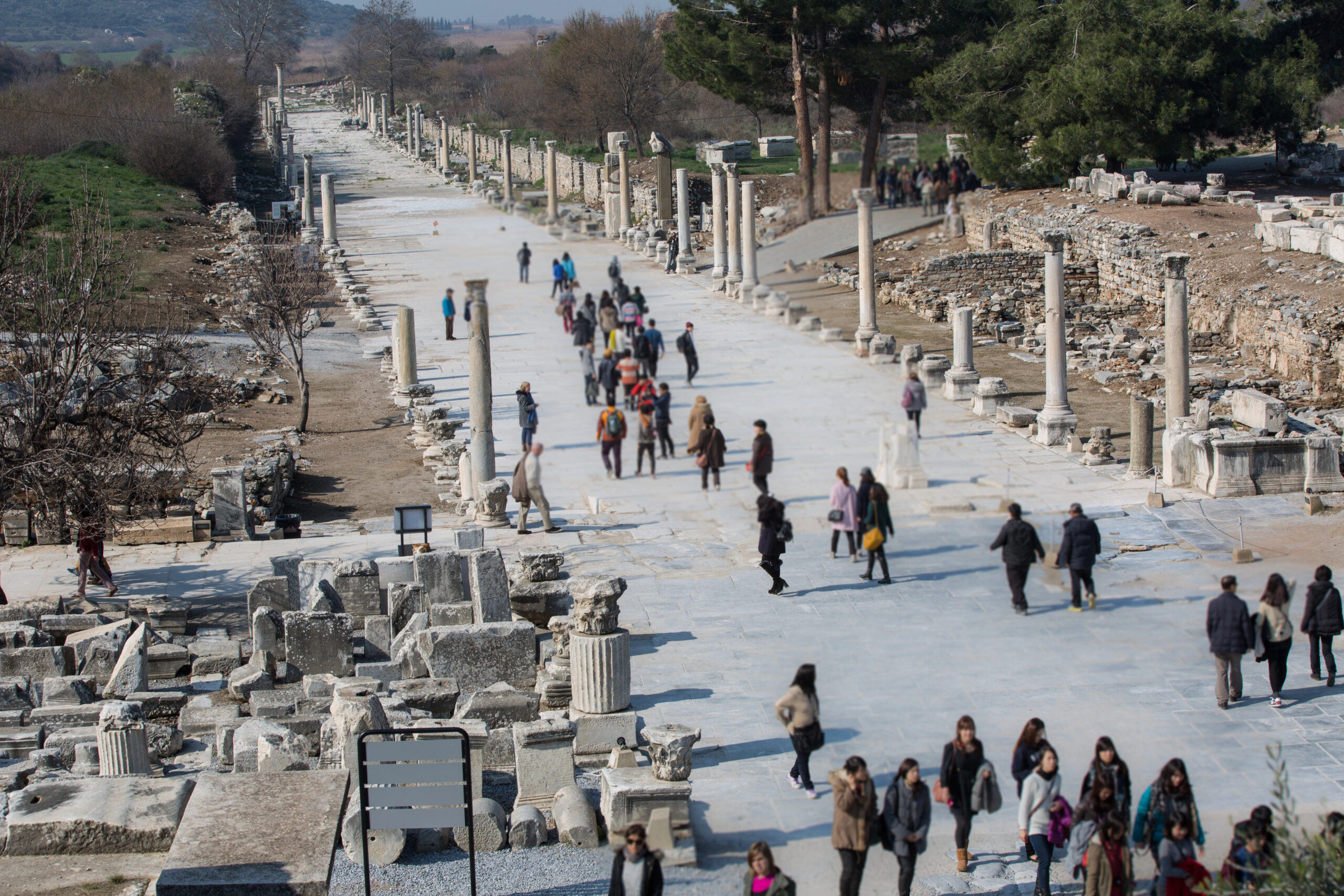 Ωστόσο από την Έφεσο ο μεγάλος μας Ηράκλειτος είχε εκφέρει αυτή τη φιλοσοφική ρήση «τα πάντα ρεί», που έδοσαν στη διαλεκτική της ιστορίας τη δύναμη να καθορίζει την πορεία του κόσμου. Παραθαλάσσια αρχικά η Έφεσος στον μυχό του Καϋστριου κόλπου, ιδρύθηκε από τις Αμαζόνες κατά τους μυθικούς χρόνους, αν και φαίνεται πως υπήρξε ιωνική αποικία υπό τον Άνδροκλο, τον γιό του βασιλιά των αθηναίων Κόδρου. Από τον 8ο π.Χ. αιώνα η Έφεσος έγινε οικονομικό κέντρο της Μικρασίας, αφιερωμένη στη θεά Αρτεμη, που ο ναός της το περίφημο Αρτεμίσιον, αποτέλεσε ένα από τα επτά θαύματα του αρχαίου κόσμου. Η πόλη πέρασε μετά από τους λυδούς και τους μιθριδάτες, στους μακεδόνες, τους ρωμαίους και τους βυζαντινούς, αλλά οι προσχώσεις που κατέστρεψαν το λιμάνι της, οδήγησαν στην παρακμή και στην εγκατάλειψη της. Είχε μεσολαβήσει ωστόσο από τον πρώτο αιώνα ο χριστιανισμός, το πέρασμα από την πόλη του Αγίου Ιωάννου του Θεολόγου, της Παναγίας και του Αποστόλου Παύλου και η καταγραφή της, ως μια από τις επτά εκκλησίες του Βιβλίου της Αποκαλύψεως, που κατά ένα τρόπο θα μπορούσε να ερμηνεύσει και τα μεταγενέστερα γεγονότα της Μικρασίας. Ο τεράστιος αρχαιολογικός χώρος της αρχαίας Εφέσου άρχιζε από τον λεγόμενο τάφο της Παναγίας, κάτω από το «φρούριο των σελτζούκων», όπου είχε φυλακιστεί και ο Απόστολος Παύλος, και εκτεινόταν κατά μήκος της κεντρικής οδού, που συνδέει το νότιο με το βόρειο άκρο της πόλης. Η διαδρομή περιλαμβάνει το Ωδείο, το υδραγωγείο, το στάδιο, το τεράστιο θέατρο, τη θαυμαστή βιβλιοθήκη του Κέλσου και τα ερείπια του Αρτεμισίου, όσα αποκάλυψαν οι αρχαιολογικές ανασκαφές από το 1874 ως σήμερα. Δύσκολο να συνθέσει κανείς από τα ερείπια, τα μάρμαρα, τους κίονες, τα μωσαϊκά, τις επιγραφές, τα πλακόστρωτα, τη ζωή της αρχαίας πόλης, τη σύγκρουση λαών και πολιτευμάτων, τις επιδρομές και τις κατακτήσεις, την κοινωνική και την εμπορική ζωή, τη λατρεία της «πολυμάστου Αρτέμιδος», με το ισχυρό ιερατείο, τους ευνούχους και τις ιερόδουλες, και τους μετέπειτα χριστιανούς που χάραζαν στα μάρμαρα σταυρούς και κύκλους με το ΙΧΘΥΣ, για να εξορκίσουν την ειδωλολατρία. Πέρα από τις αξιοπερίεργες πέτρινες τουαλέτες, και όλα τα υλικά ευρήματα και τους αρχιτεκτονικούς ρυθμούς, ποιος να συλλάβει το μεγάλο πνεύμα αυτής της αρχαίας πόλης, τη γέννηση, την ανάπτυξη, τον θάνατο της, μέσα στη διαδρομή των αιώνων. Ίσως μόνο η σύγχρονη τεχνολογία, που χρησιμοποιεί το μουσείο της Εφέσου, στο τέλος της αρχαιολογικής διαδρομής, μια όντως καταπληκτική παράσταση ήχου και φωτός, να προσφέρει μια μορφή συνθέσεως των εντυπώσεων της πόλης.