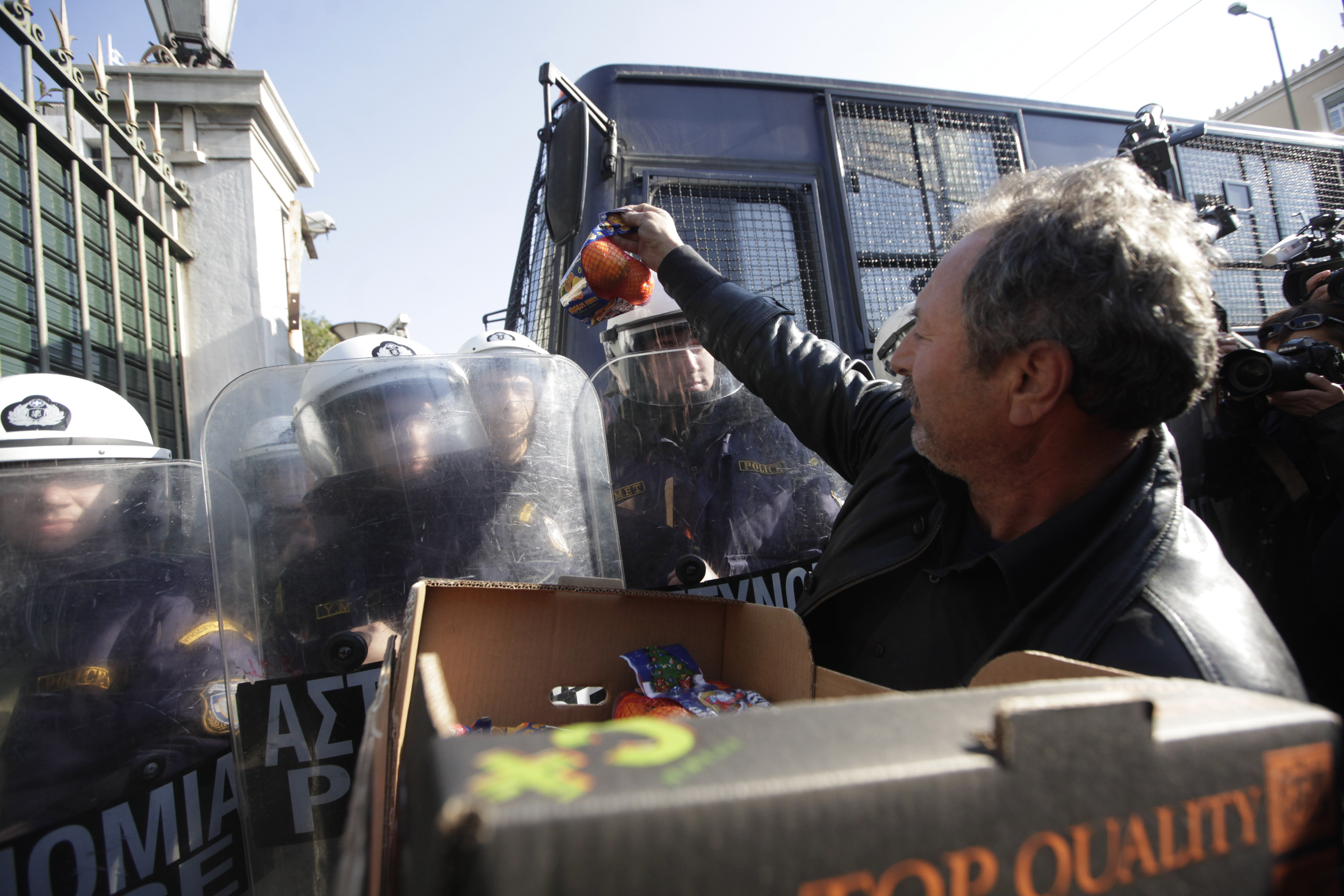 Με χρήση χημικών και δακρυγόνων απάντησαν δυνάμεις των ΜΑΤ στους συγκεντρωμένους αγρότες, που λίγο πριν τη μία η ώρα επιχείρησαν να μπουν στον προαύλιο χώρο του Κοινοβουλίου. Γύρω από την πλατεία Συντάγματος σημειώνονται συμπλοκές, ενώ η αστυνομία έχει προχωρήσει σε δύο προσαγωγές, με ένα εκ των οποίων ο Κρητικός αγρότης Γιάννης Μαλλιωτάκης από το Λασίθι.