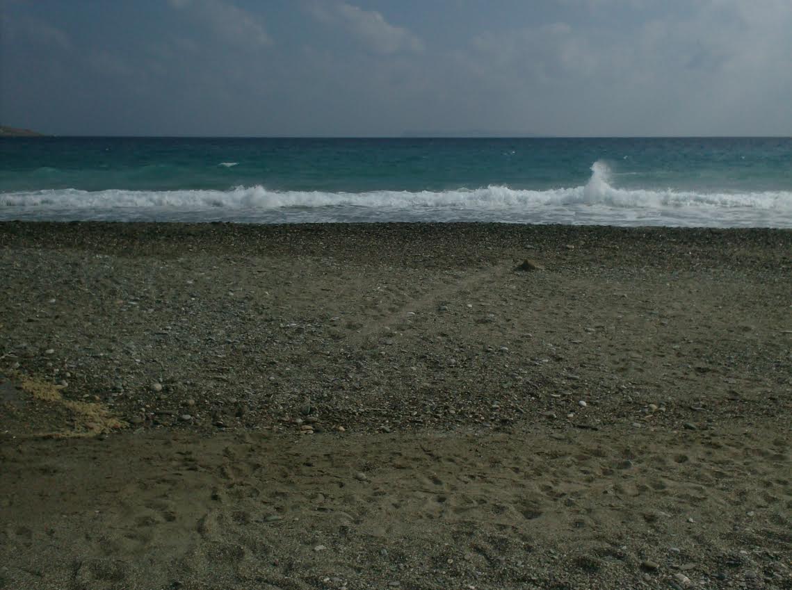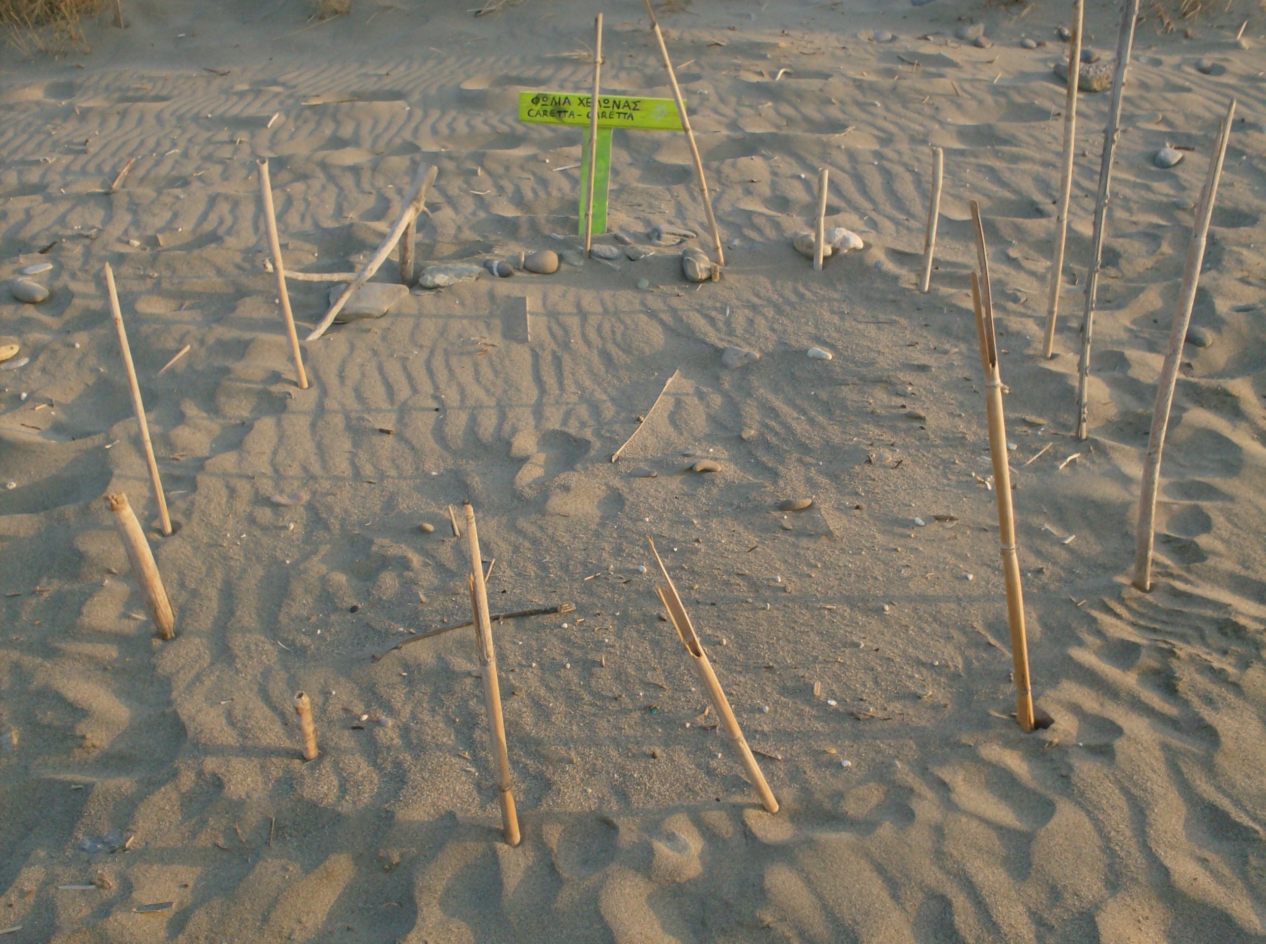 Σ’αυτό το σημείο καλό θα ήταν να τονίσω την τεράστια ζημιά που προκαλούν οι ξαπλώστρες κι οι ομπρέλες στην παραλία αφού σε αυτήν γεννούν τα αυγά τους εδώ και χιλιετίες. Τις τελευταίες δεκαετίες όμως η παραλία έχει καταληφθεί από ομπρέλες και ξαπλώστρες. Δε θα αναφερθώ τώρα περισσότερο στο κέρδος-χρήμα και στο πως αυτό μας εξουσιάζει, θα αρκεστώ να πω πως είμαι αντίθετος σε αυτό το πρόταγμα. Οι φωτογραφίες που επισυνάπτω είναι από την παραλία της Σητείας και αποτυπώνουν τα ίχνη της caretta-caretta όταν βγήκε από τη θάλασσα για να γεννήσει τα αυγά της μέσα στην άμμο (1η φωτ.) και των μικρών της όταν βγήκαν από την άμμο (ύστερα από δίμηνη παραμονή τους εκεί) για να κατευθυνθούν στη θάλασσα (3η φωτ.).
