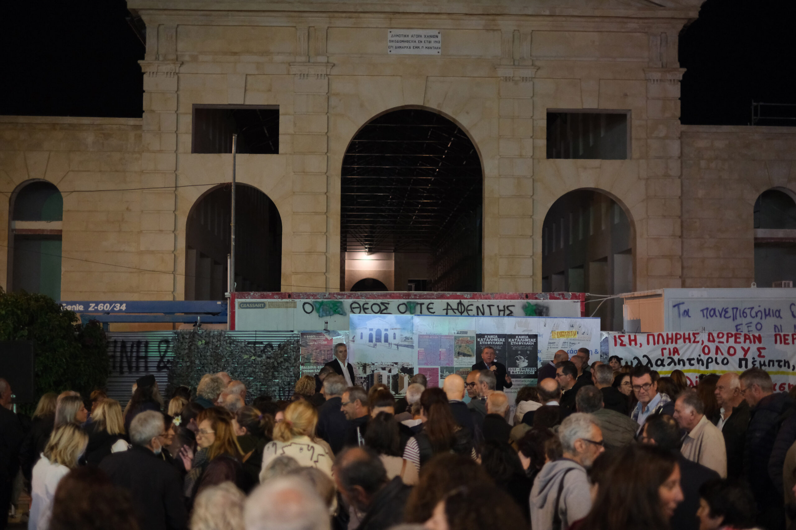 Στα Χανιά, πλήθος κόσμου συγκεντρώθηκε στην Πλατεία Δημοτικής Αγοράς, παρουσία του Αντιπεριφερειάρχη Χανίων Ν. Καλογερή, καθώς και των Δημάρχων Χανίων Π. Σημανδηράκη, Πλατανιά Γ. Μαλανδράκη, Καντάνου-Σελίνου Αντ. Περράκη και Αποκορώνου Χ. Κουκιανάκη.