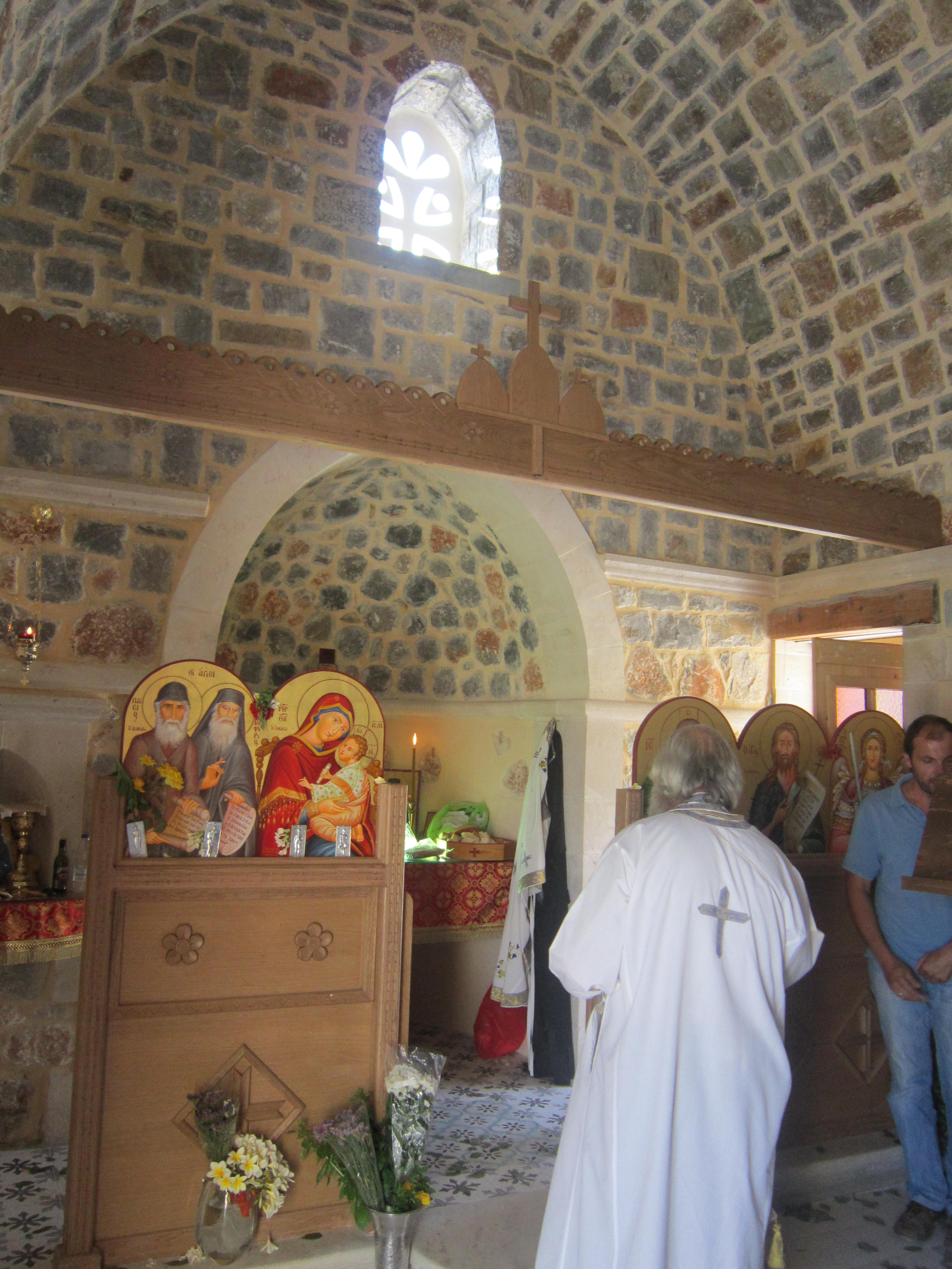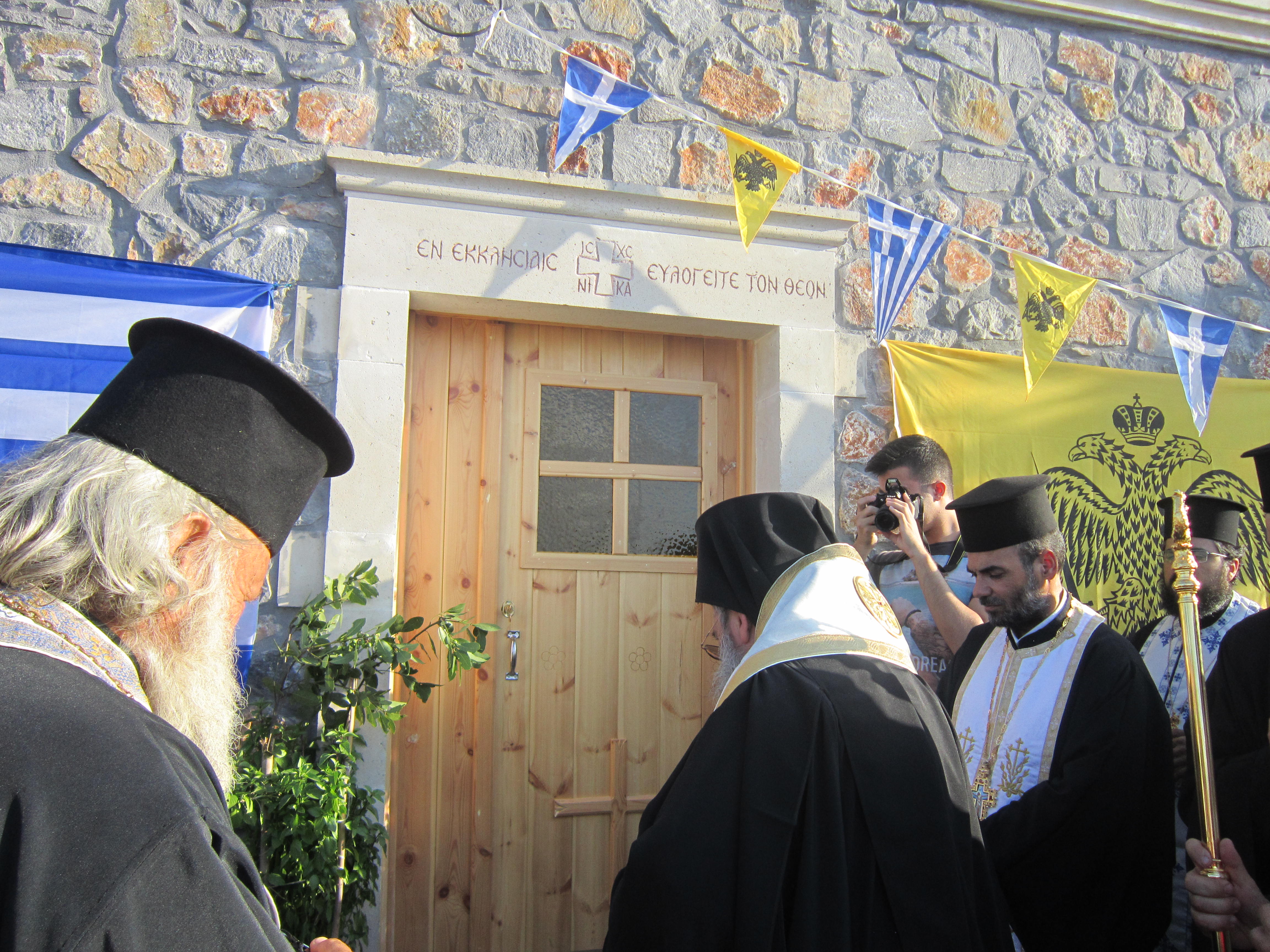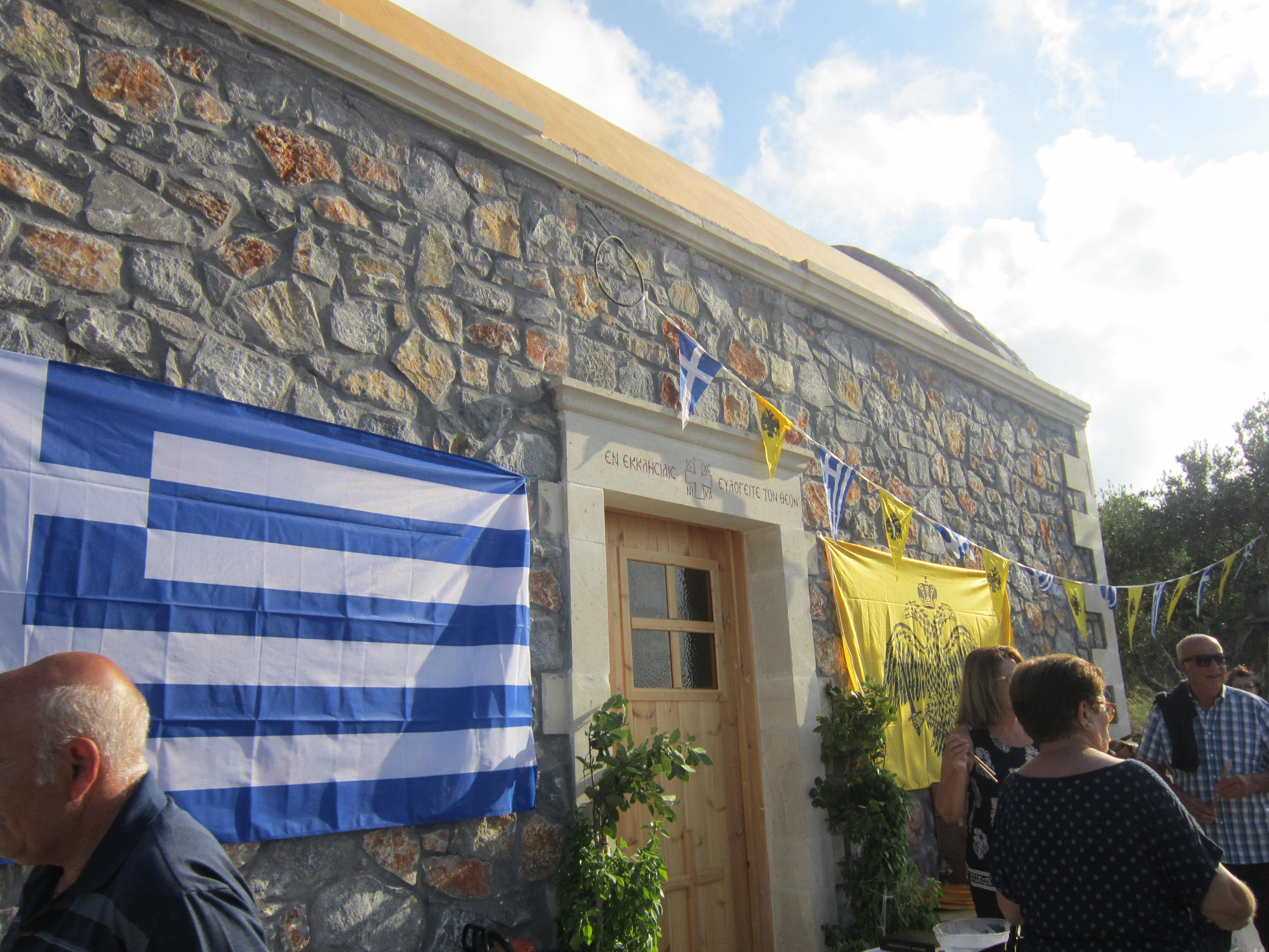 Ο ναός κτισμένος με μαύρη πέτρα του τόπου, εναρμονίζεται απόλυτα με το φυσικό περιβάλλον. Τα θυρανοίξια τελέστηκαν από τον Μητροπολίτη Ρεθύμνης και Αυλοποτάμου κ.κ. Ευγένιο, ενώ πλήθος ιερέων έδωσαν το παρόν. Οι πιστοί προσήλθαν στον ναό με πνεύμα υπομονής και κατάνυξης. Άνθρωποι που έφθασαν με πίστη από το Ρέθυμνο, τα Χανιά, το Ηράκλειο, αλλά και μακρύτερα, τη Μάλτα, τη Ρωσία, το Γιοχάνεσμπουργκ της Νοτίου Αφρικής και αλλού…