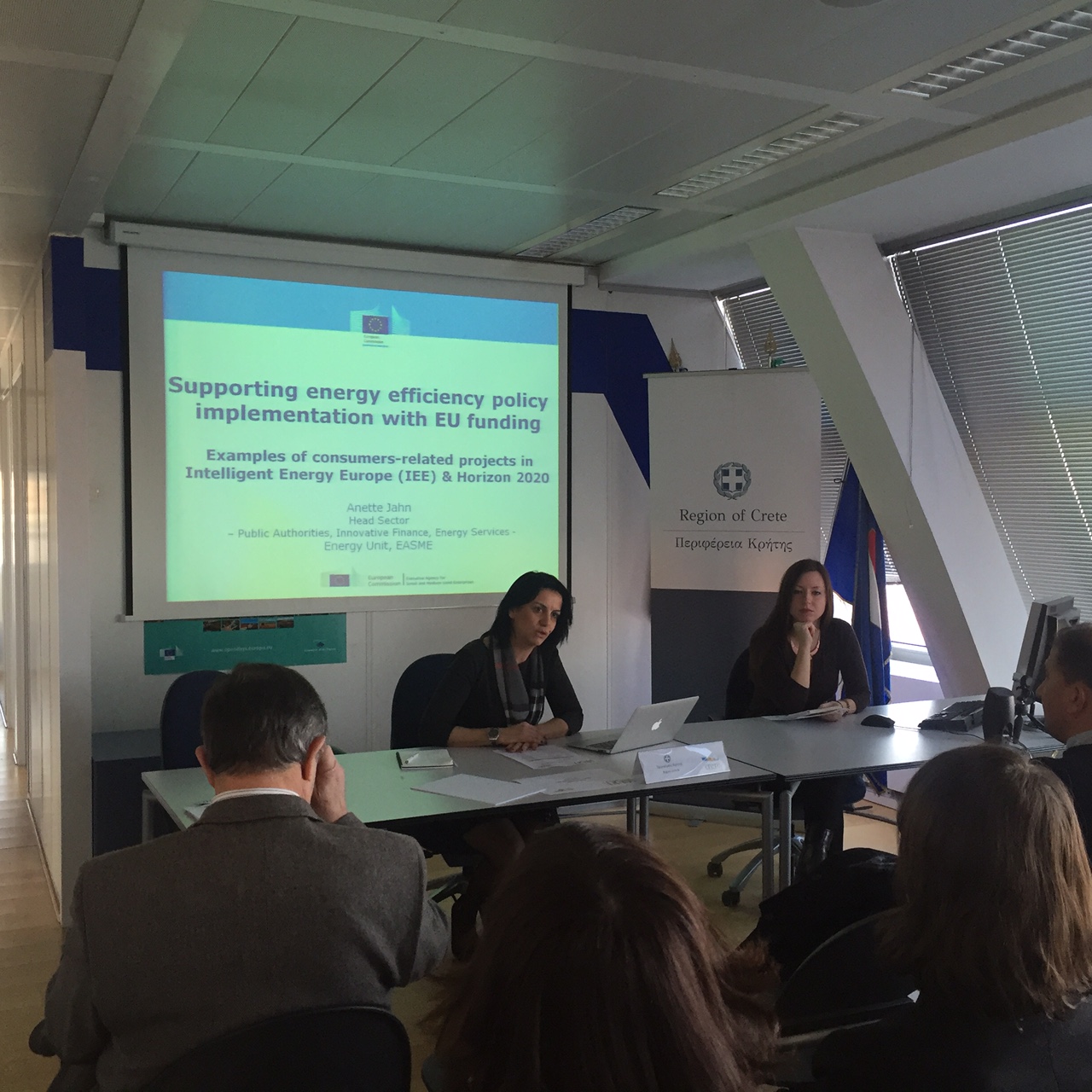 Στις Βρυξέλλες φιλοξένησε η Περιφέρεια Κρήτης το «Ανοικτό Συνέδριο» και την Τελική Συνάντηση των εταίρων του Ευρωπαϊκού Προγράμματος IEE – Euronet 50/50max “Ξεκλειδώνοντας την εξοικονόμηση ενέργειας σε σχολεία και άλλα δημόσια κτίρια” , με τη συμμετοχή εκπροσώπων της ΕΕ από την Εκτελεστική Επιτροπή για τις μικρομεσαίες επιχειρήσεις (EASME), για το Σύμφωνο των Δημάρχων (Covenant of Mayors, – COMO) αλλά και εκπαιδευτικών από 13 χώρες (Ισπανία, Πολωνία, Ιταλία, Φινλανδία, Ελλάδα, Γερμανία, Σλοβενία, Λιθουανία, Κροατία, Λετονία, Τσεχία, Αυστρία και Κύπρο).