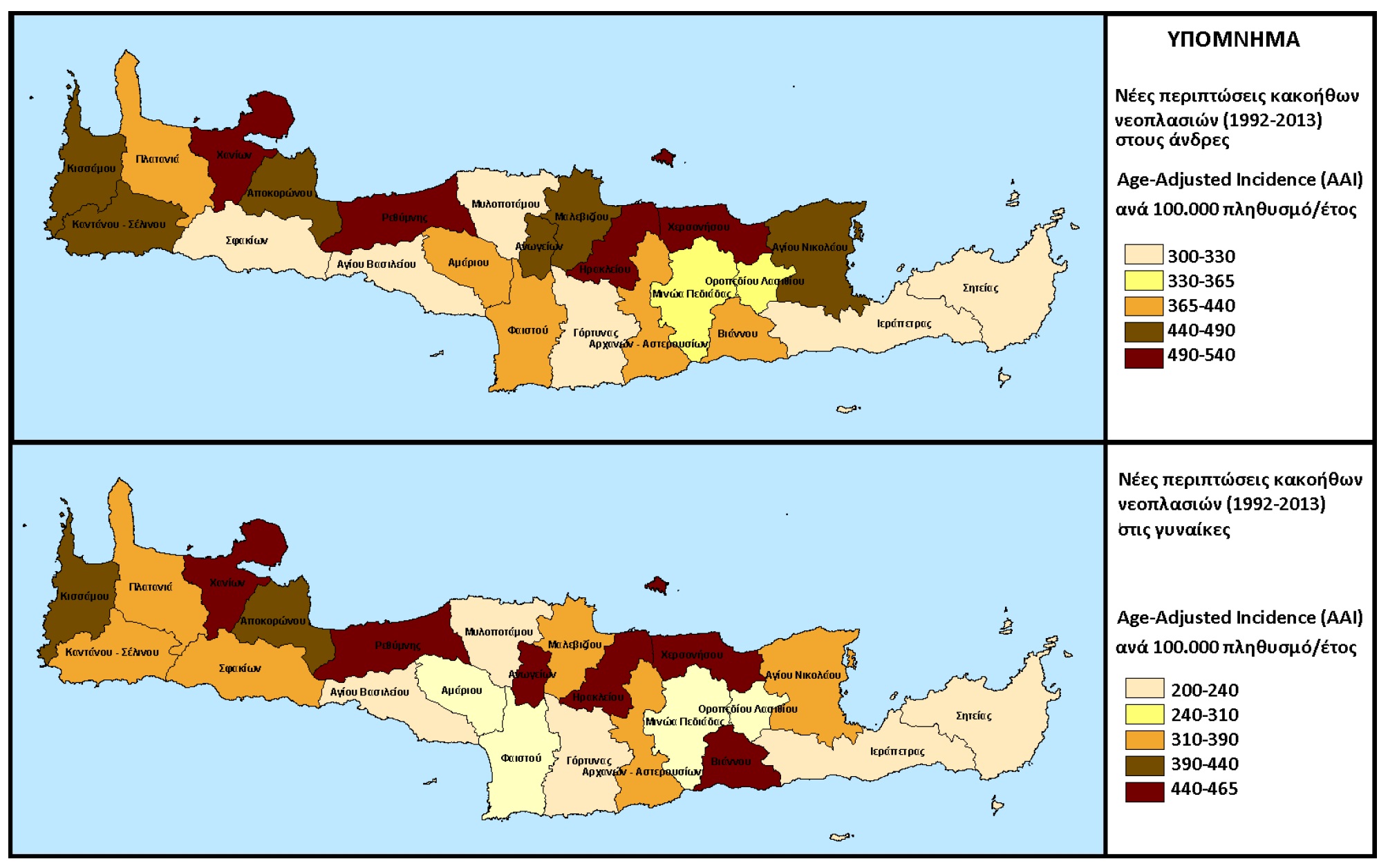 Πάντως, ανεξαρτήτως των συγκρίσεων σε ευρωπαϊκό επίπεδο, σε επίπεδο Κρήτης και σε βάθος εικοσαετίας, η αύξηση των ποσοστών καρκίνου είναι μεγάλη και καταγράφεται και ποσοστικά.