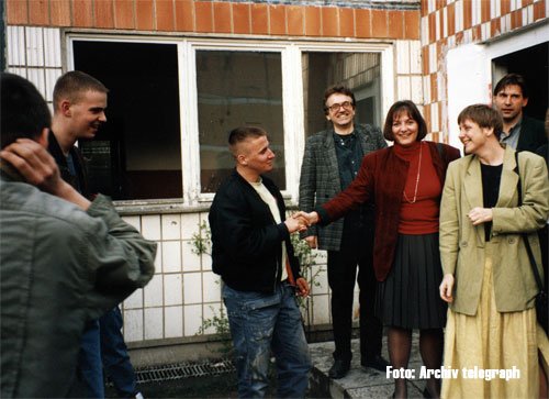 Λίγους μήνες μετά η Μέρκελ μαζί με την Σαβίνα Σναρεμπέργκερ (με το κόκκινο φόρεμα) επισκέφθηκαν το νεοφασιστικό clubElbterrassen ως εκπρόσωποι της κυβέρνησης των Χριστιανοδημοκρατών. Το συγκεκριμένο κλαμπ νεότητας θεωρούταν προπύργιο των νεοναζί της περιοχής.