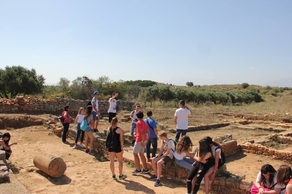 Οι ξεναγοί – μαθητές μας ξενάγησαν τους συμμαθητές τους στον μαγικό αυτόν αρχαιολογικό χώρο και στη συνέχεια παρακολουθήσαμε στον χώρο του αρχαίου θεάτρου αποσπάσματα από την τραγωδία του Ευριπίδη «Ελένη» που προετοίμασαν μαθητές μας.