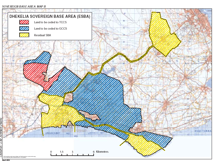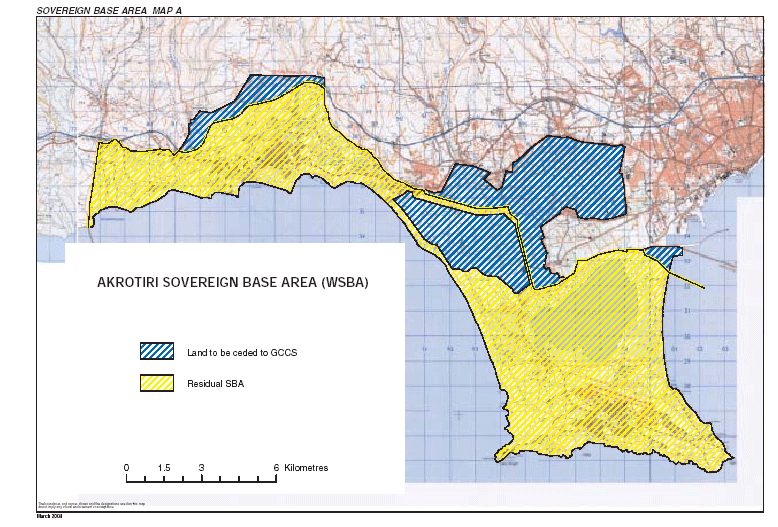 5 Υπάρχουν αρκετές ερμηνείες αυτής της ιδιότυπης διατύπωσης: Ενδεχομένως οι Βρετανοί δεν ήθελαν να εκχωρήσουν ρητά τις συγκεκριμένες περιοχές, για να μην υπενθυμίσουν ότι εξακολουθούν να δεσμεύονται από τη σχετική συμφωνία του 1960, η οποία μπορεί να δημιουργούσε προηγούμενο που θα κατέληγε σε απόδοση όλων των εδαφών των βάσεων. Μια δεύτερη πιθανότητα είναι ότι η Βρετανία δεν θεωρούσε την Κύπρο που θα προέκυπτε από το Σχέδιο Ανάν συνέχεια της Κυπριακής Δημοκρατίας του 1960. Σε μια τέτοια περίπτωση, τυπικώς δεν θα μπορούσε να εκχωρήσει το έδαφος σε άλλο διεθνές υποκείμενο από αυτό που αναφερόταν στις συμφωνίες του 1960. Από την άλλη, αν το κράτος αυτό έπαυε να υπάρχει, δεν είχε υποχρέωση να εκχωρήσει στο μέλλον το υπόλοιπο τμήμα των βάσεων, το οποίο θα μπορούσε έτσι να κρατήσει επ’ αόριστον.