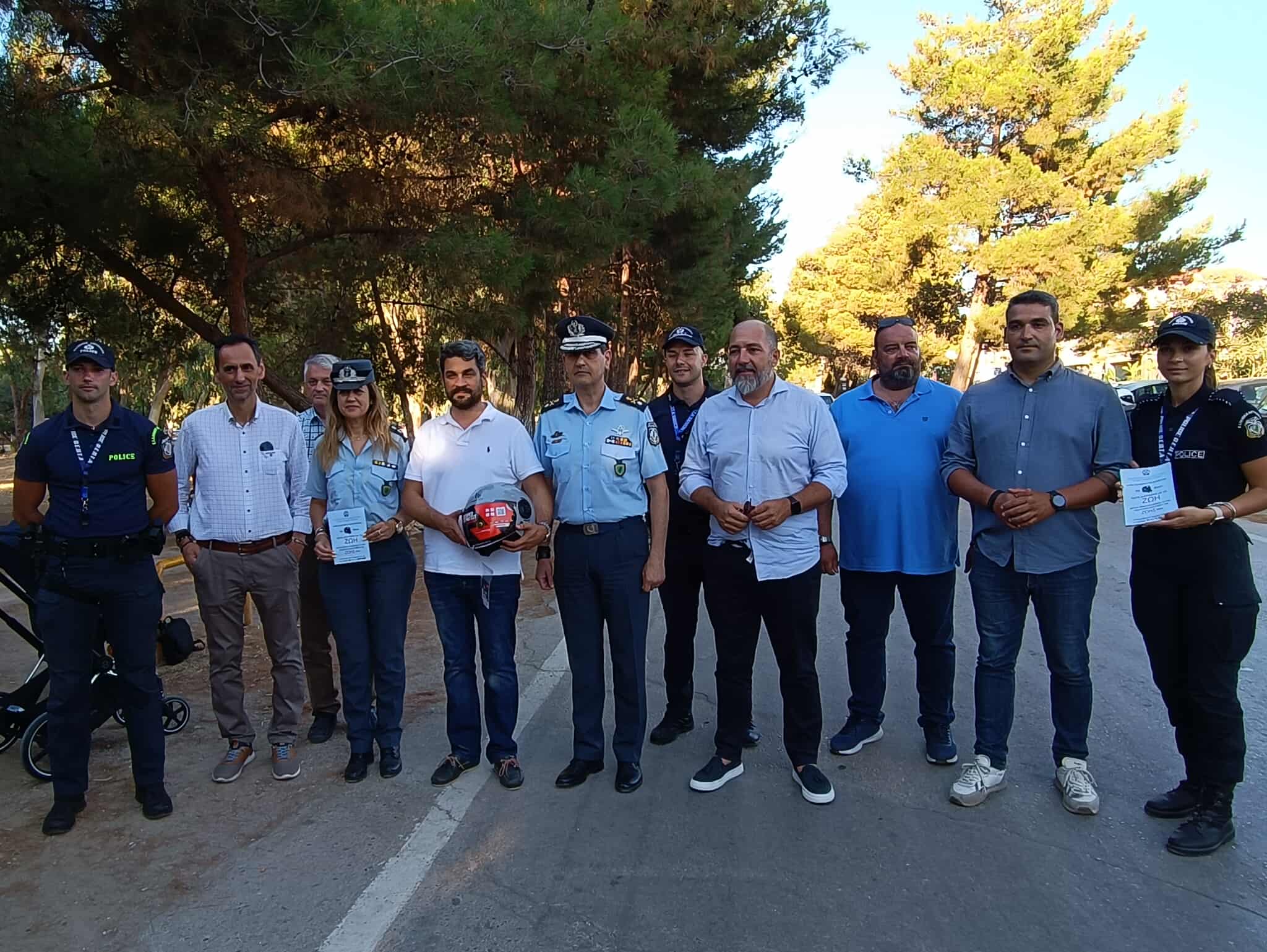 Κατά τη διάρκεια της εκδήλωσης, οι αστυνομικοί της Τροχαίας μοίρασαν προστατευτικά κράνη καθώς και συμβουλευτικά ενημερωτικά φυλλάδια σε δεκάδες πολίτες, τονίζοντας την υποχρέωση αλλά και τη σημασία της χρήσης κράνους για την αποτροπή σοβαρών τραυματισμών και θανάτων.
