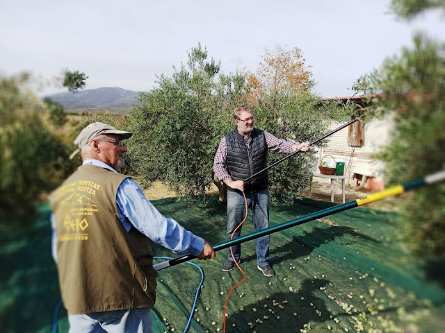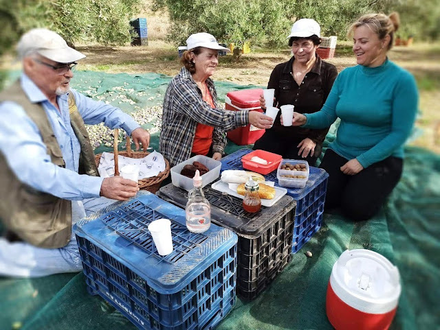 Ένα τέτοιο γευστικό μεσημεριανό κολατσιό με φίλεψε στο κτήμα που μάζευέ τις ελιές του, ο Δημήτρης Γκούτζας στο Μελίαδι Πιερίας, μέλος της ομάδας ελαιοπαραγωγών ολοκληρωμένης διαχείρισης του συνεταιρισμού Κάτω Αγιάννη Πιερίας.