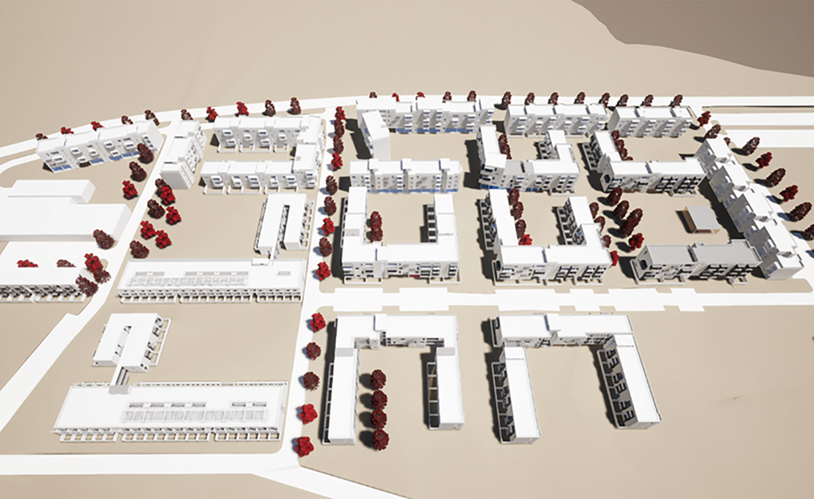 Φωτορεαλιστική απεικόνιση του συγκροτήματος κατοικιών του Πολυτεχνείου Κρήτης. Αναμένεται να είναι έτοιμο έως το 2030 και εκτός από διαμερίσματα θα έχει συνεδριακό κέντρο και σύγχρονο student centre.