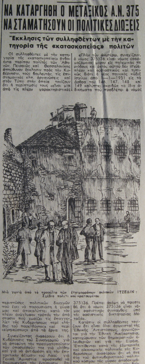Οι τελευταίοι κομμουνιστές πολιτικοί κρατούμενοι της μεταπολεμικής περιόδου πριν την επιβολή της χούντας των συνταγματαρχών απολύθηκαν από τις φυλακές Ιτζεδίν τον Ιούνιο του 1964 με τα «μέτρα ειρηνεύσεως» που πήρε η πρώτη κυβέρνηση της Ένωσης Κέντρου αποφυλακίζοντας όλους όσοι ήταν καταδικασμένοι με τον Ν. 509.